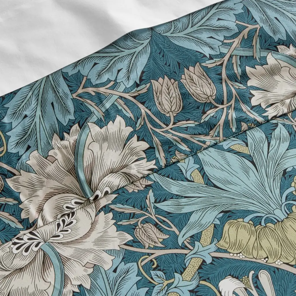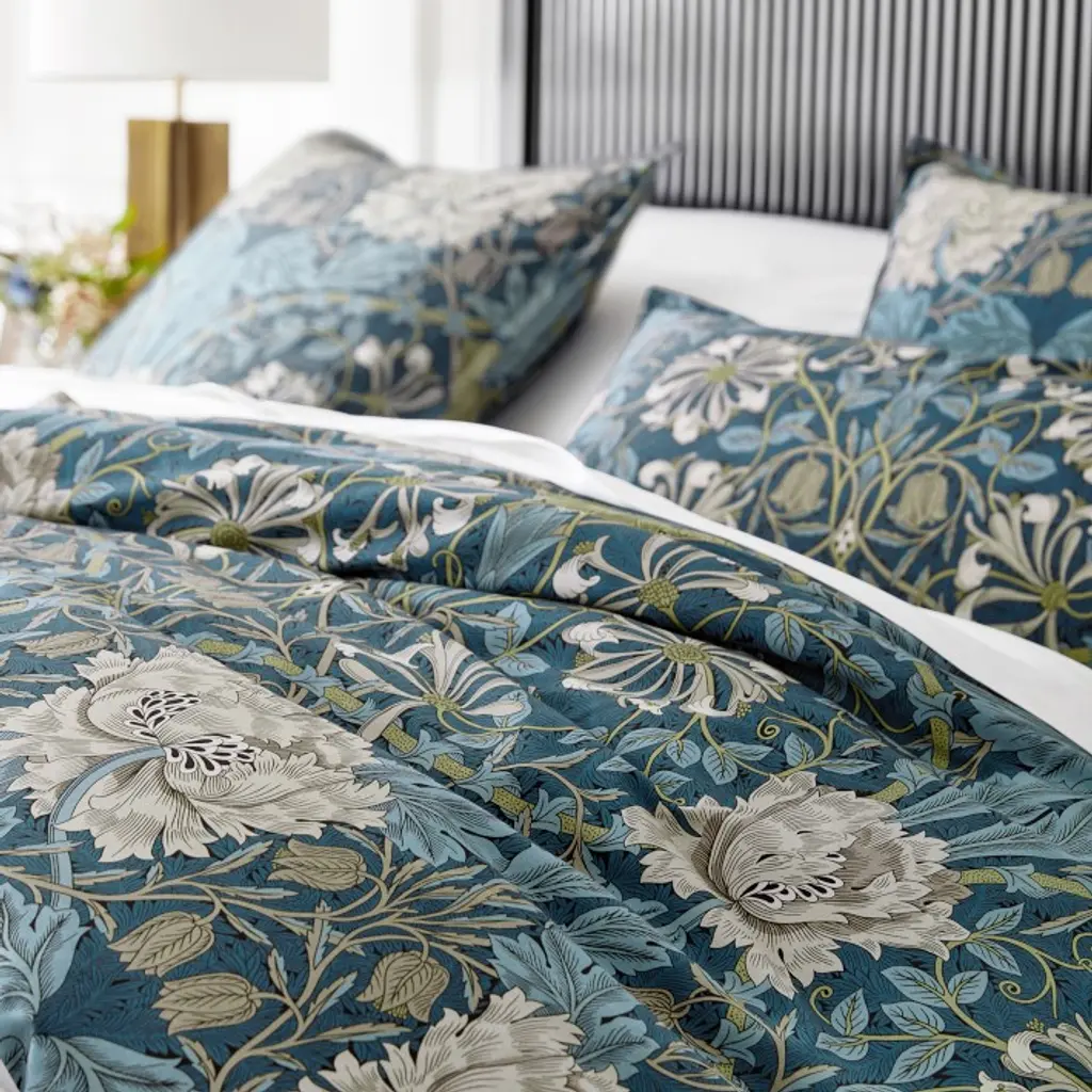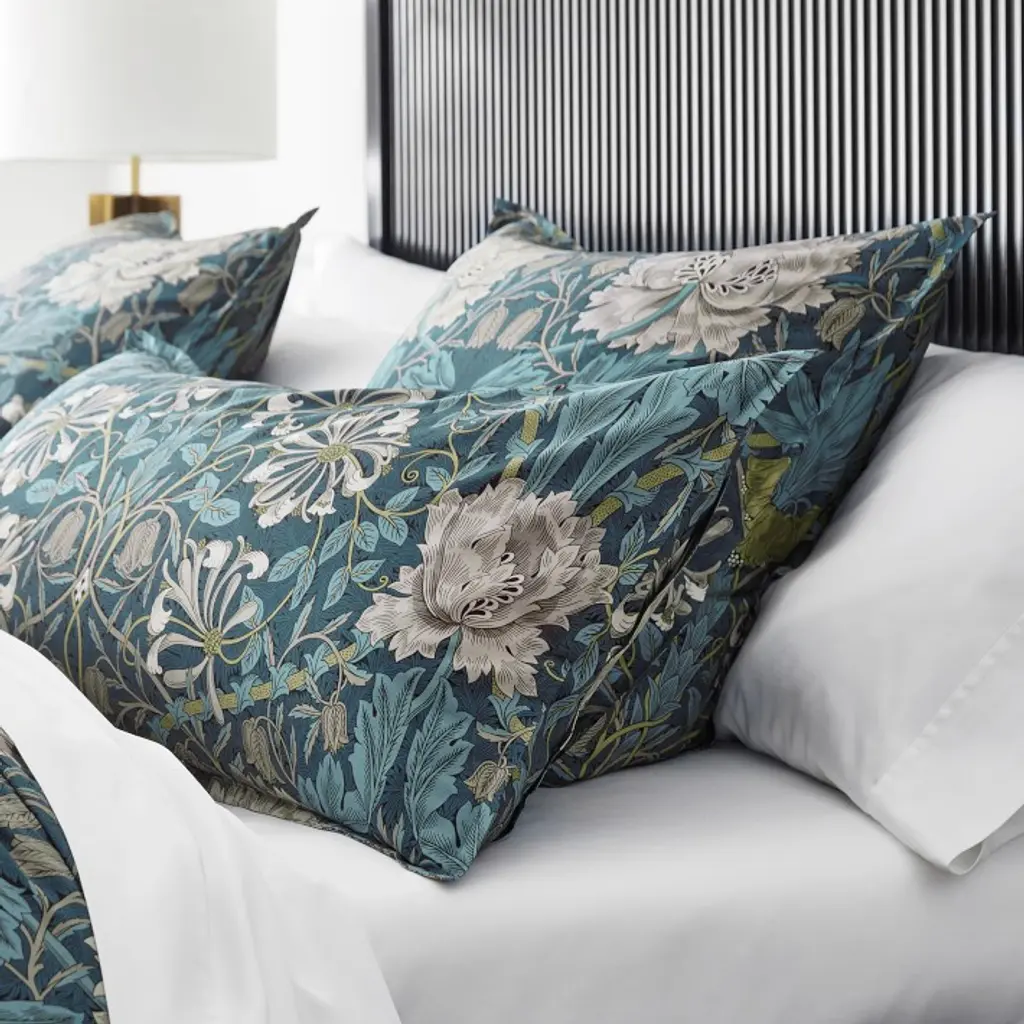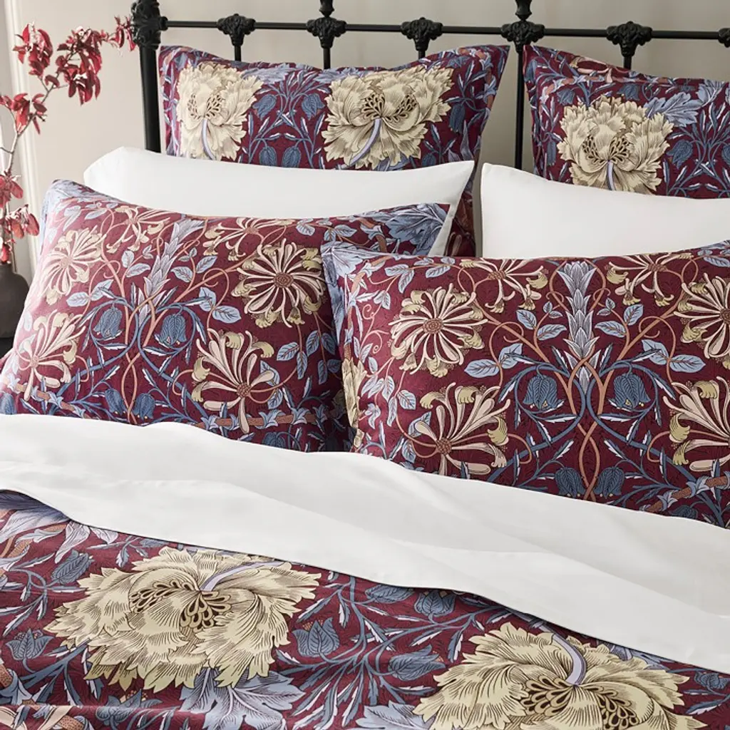 Morris & Co. designs are synonymous with the Arts and Crafts movement, featuring intricate motifs inspired by the natural world. Our Williams Sonoma Home x William Morris & Co. Collection bedding features one of the firm's most iconic botanical designs, Honeysuckle and Tulip. The vibrant pattern is beautifully printed on Turkish-cotton sateen, which offers a soft hand, rich drape and subtle luster.