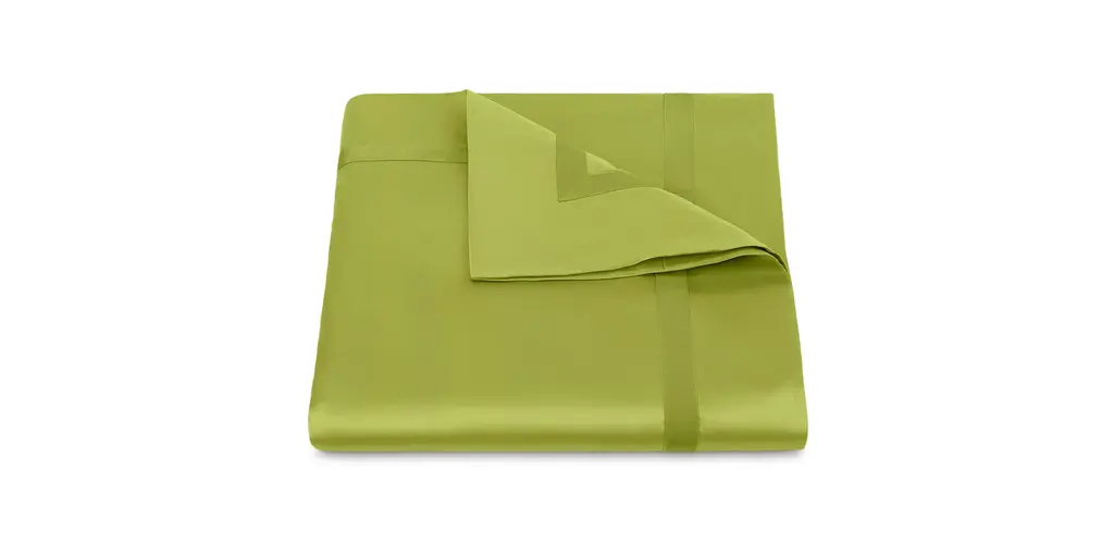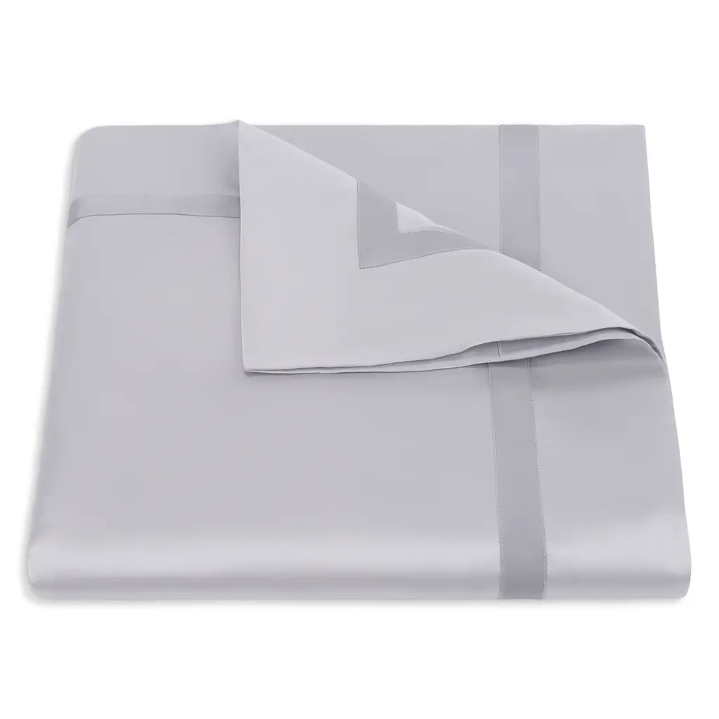 Crafted from fine Egyptian cotton, Nocturne bedding completes an opulent or traditional space, with its classic colors and luminous sheen, accented with a tonal ribbon border. The duvet is accented with a tonal ribbon frame and border at the hem.