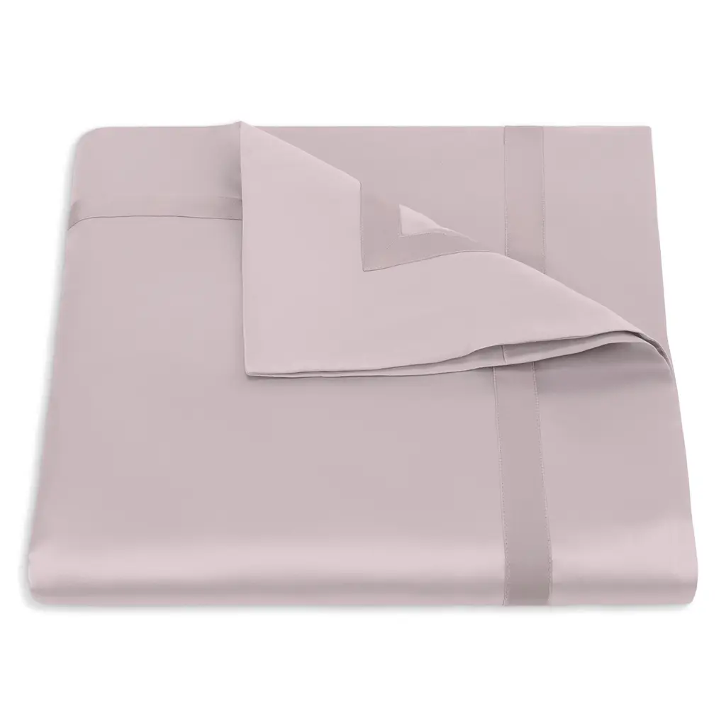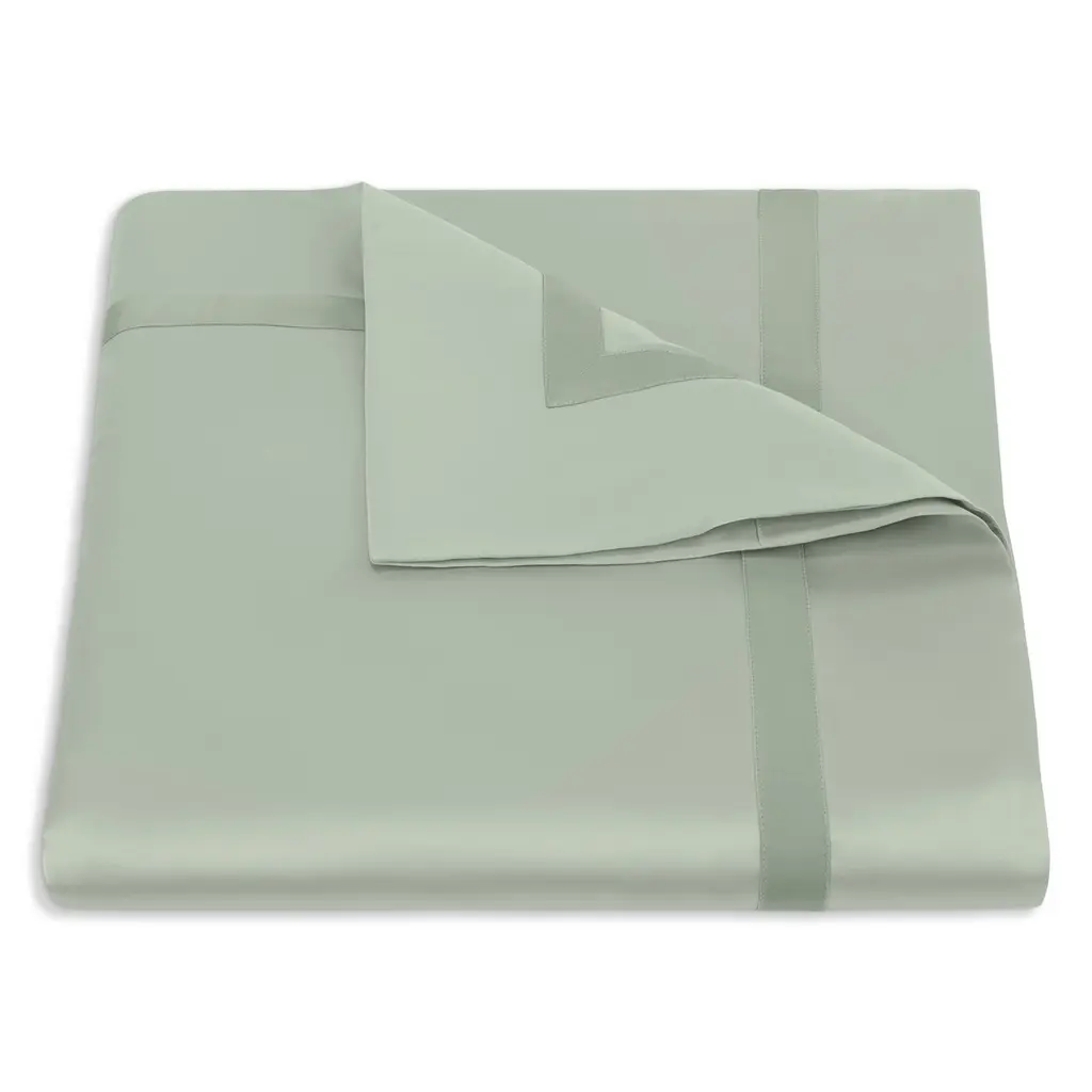 Crafted from fine Egyptian cotton, Nocturne bedding completes an opulent or traditional space, with its classic colors and luminous sheen, accented with a tonal ribbon border. The duvet is accented with a tonal ribbon frame and border at the hem.