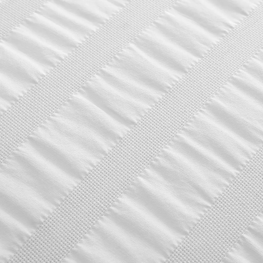 Crisp white cotton bedding adopts a modern twist in the Panama collection by Matouk, featuring alternating bands of seersucker and basketweave across the duvet cover and shams.