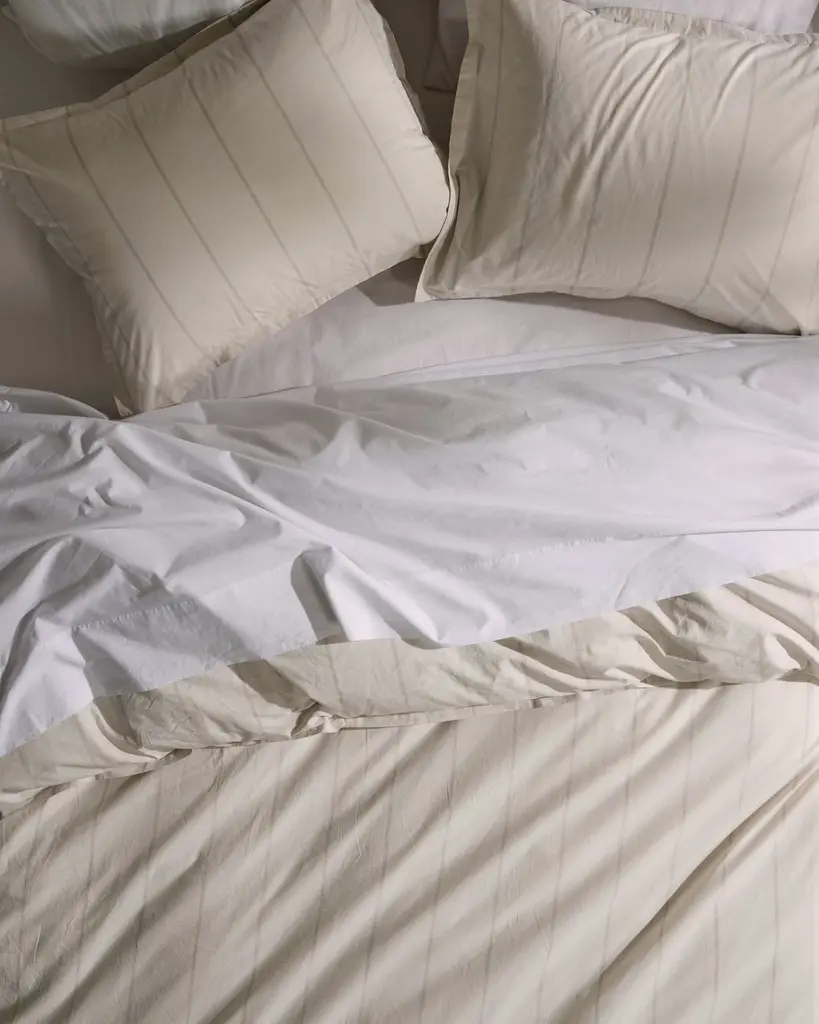 Percale Duvet Cover Set - Bone Stripe K/ck