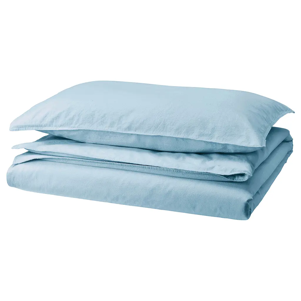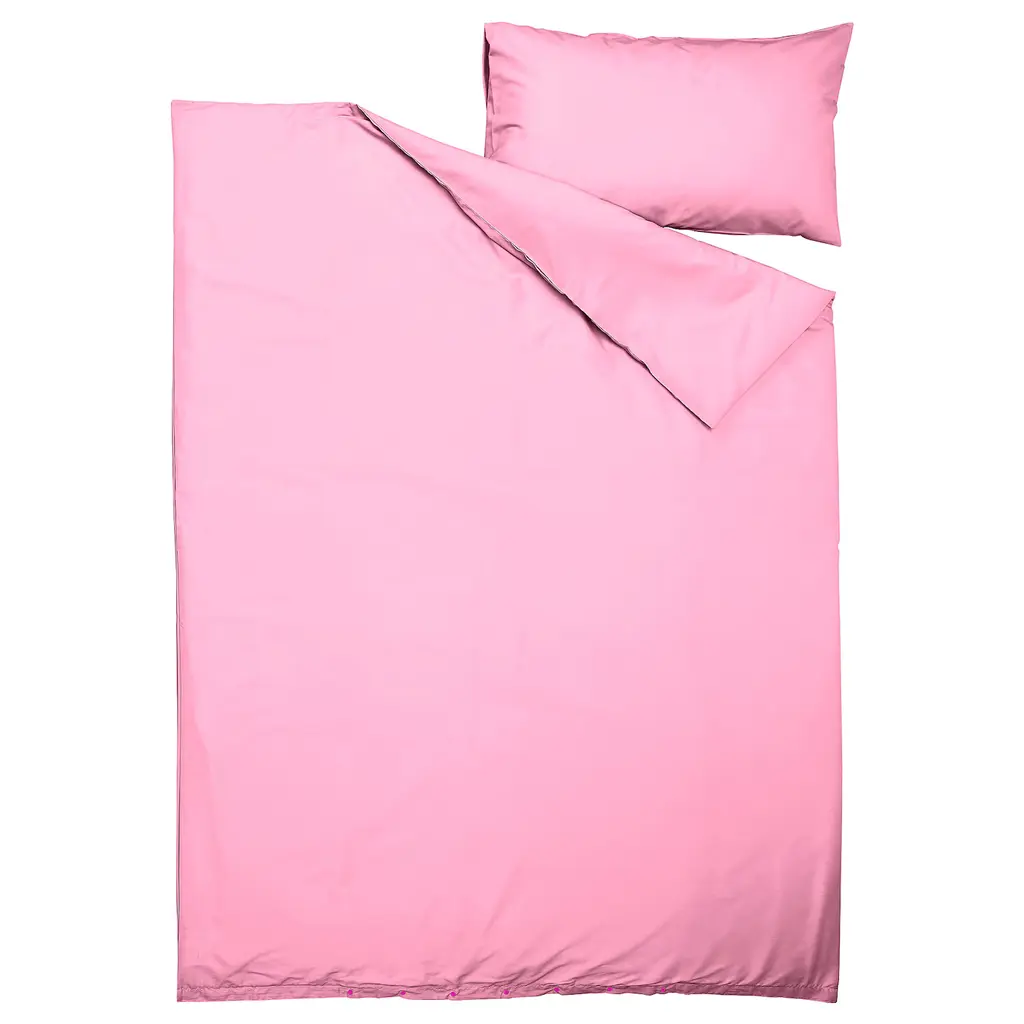 PILTANDVINGE Duvet cover and pillowcase(s) - pink Twin. The polyester/viscose blend gives you a long-lasting and smooth material. Polyester does not shrink, dries quickly and is wrinkle-free while viscose, made from wood pulp, is smooth and has a fine sheen. Pillowcase with envelope closure.
