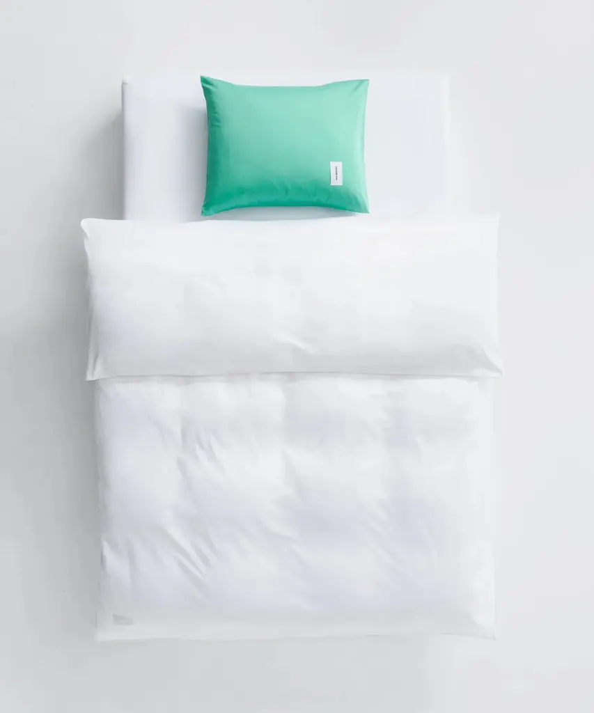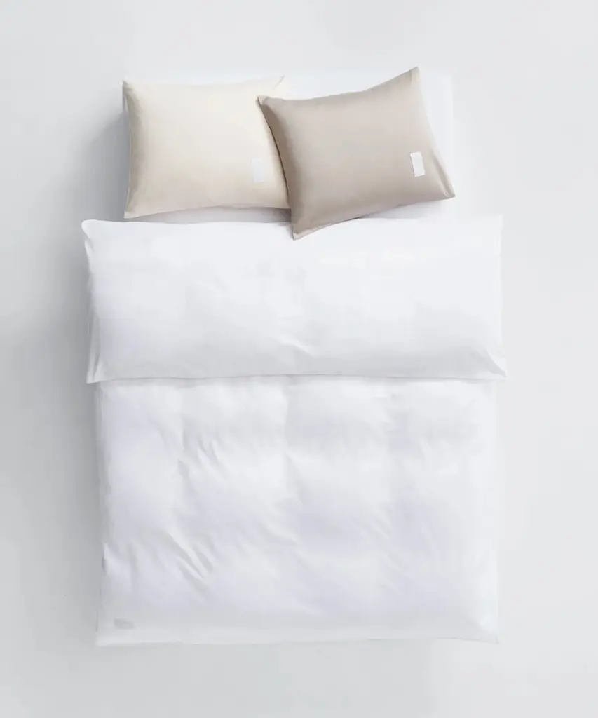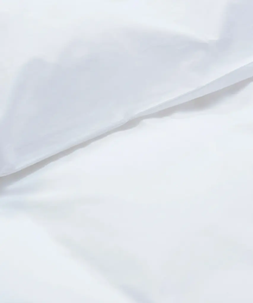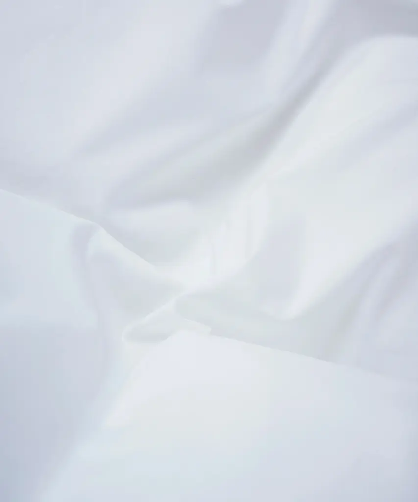 Duvet cover made from luxuriously soft crisp white cotton poplin. The Pure collection is sleek and minimalist, designed with as few visible stitches as possible to infuse a sense of calm in the bedroom. Produced in Portugal by Magniberg.