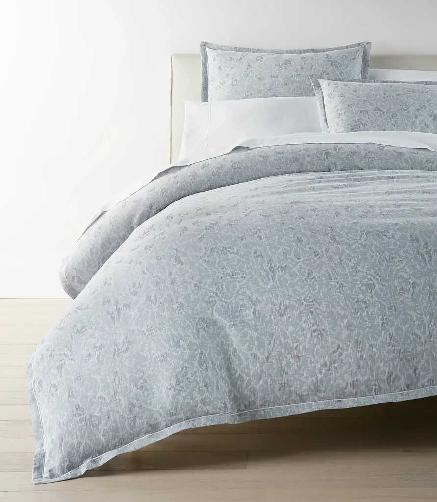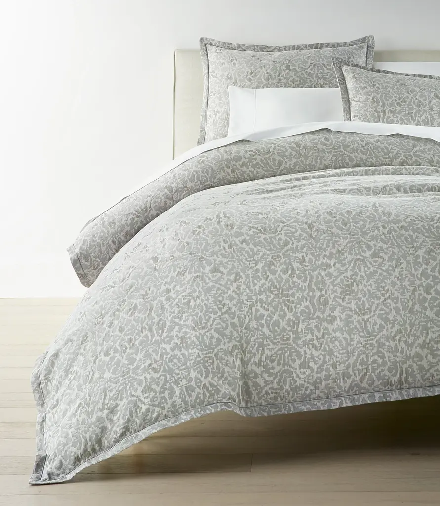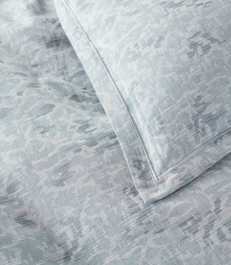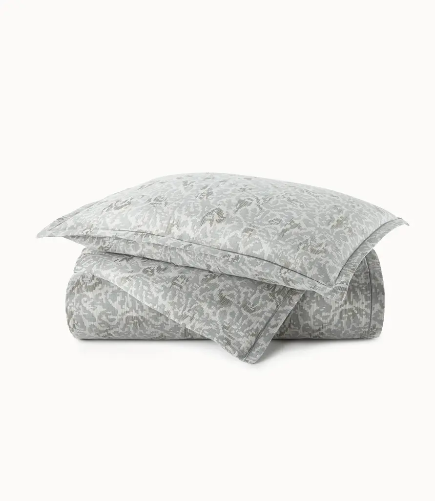 Handcrafted in the north of Italy, Ravenna is a masterfully woven jacquard with a modernized, deconstructed Damask design. Available in multiple soothing tones that translate well with taupe and gray; it is gender neutral and can be mixed with an array of styles. For a transitional look, the duvets and shams feature a 1” flange with a coordinating satin stitch.