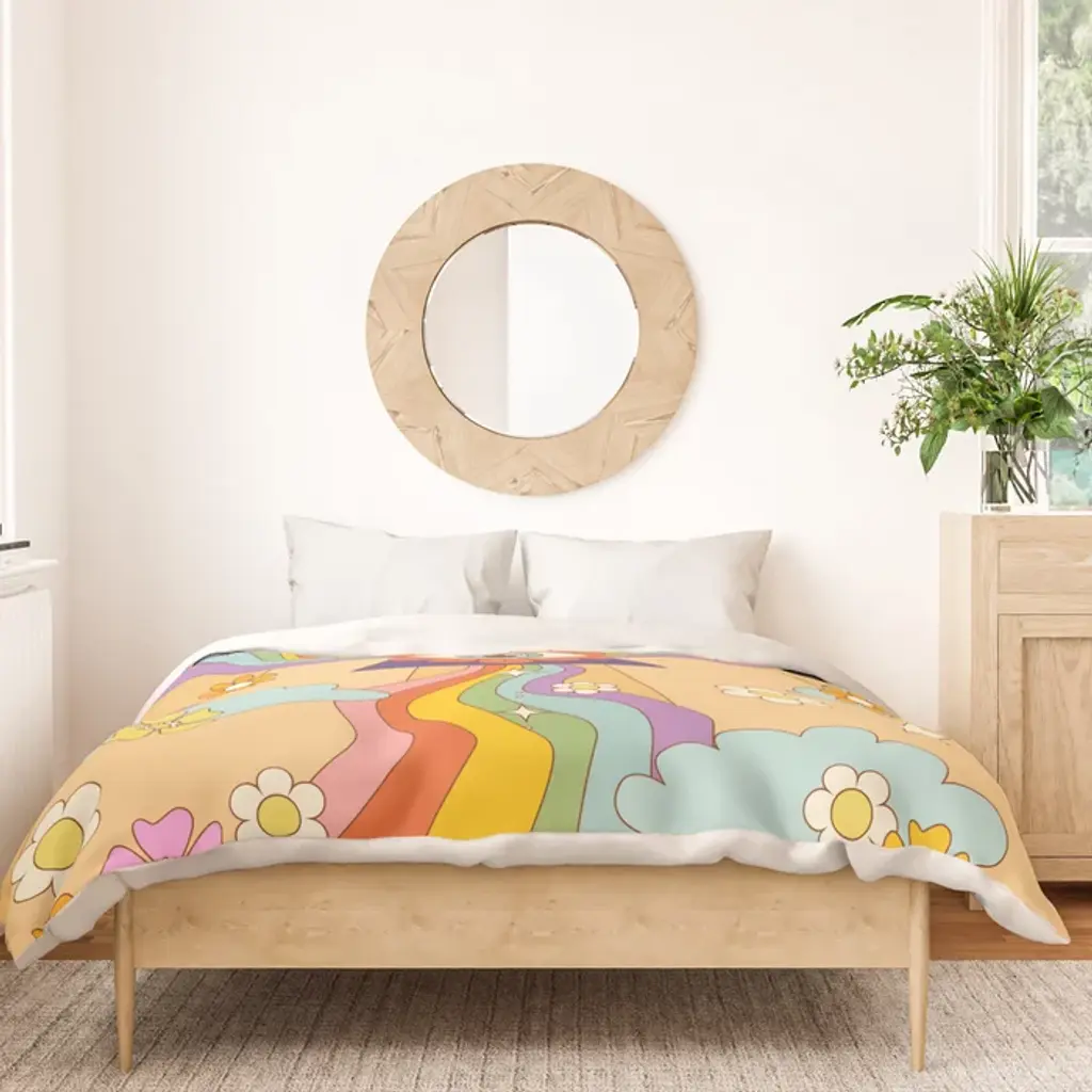 Retro Hippie Boho Rainbow Print Duvet Cover