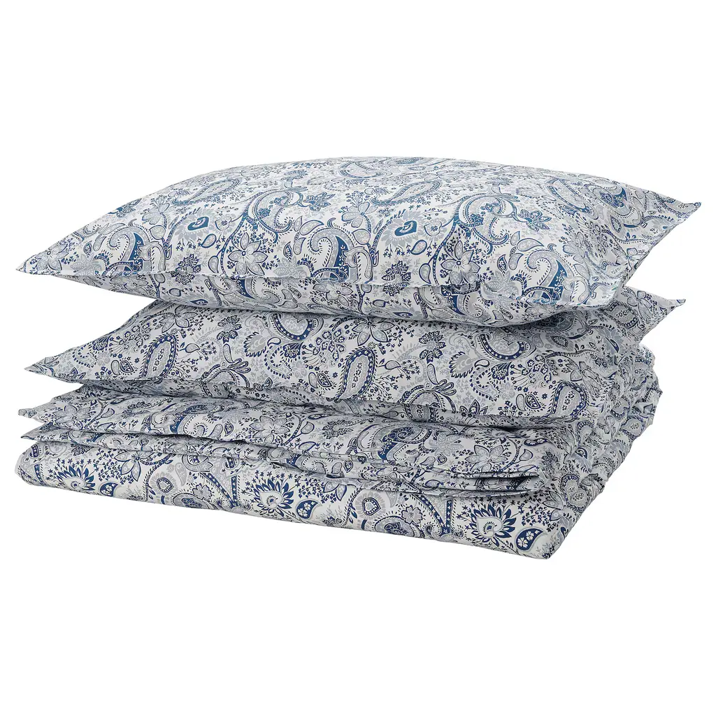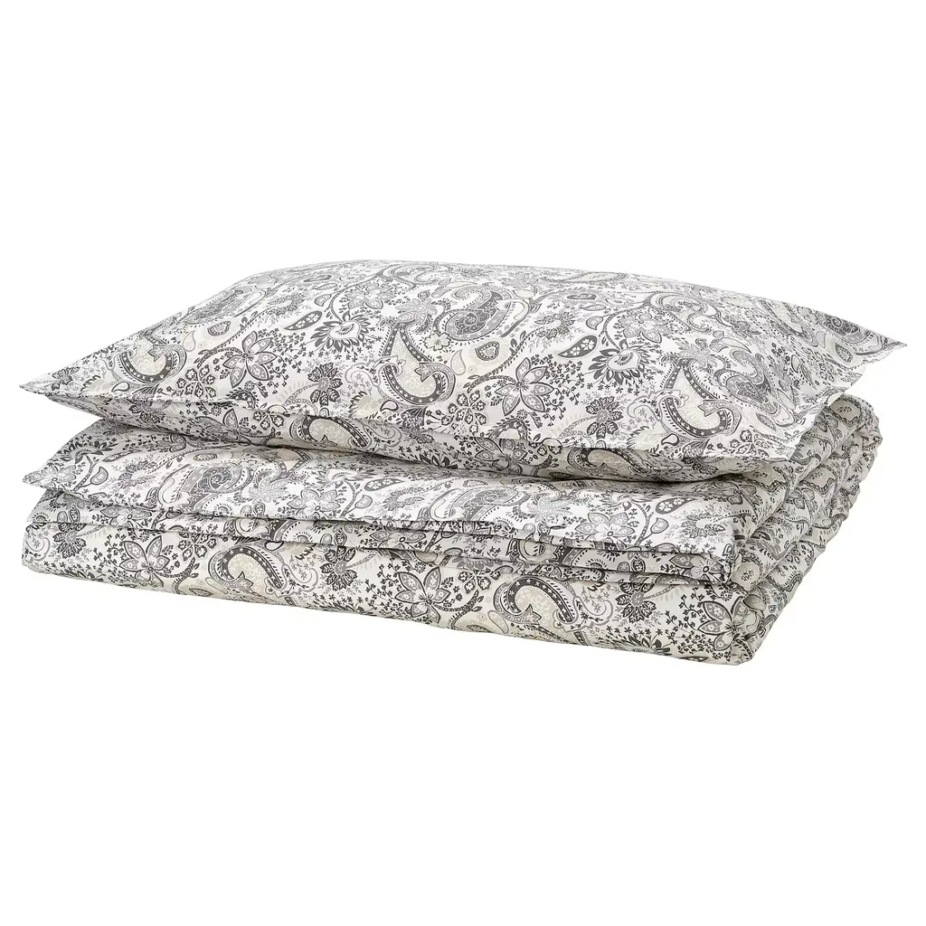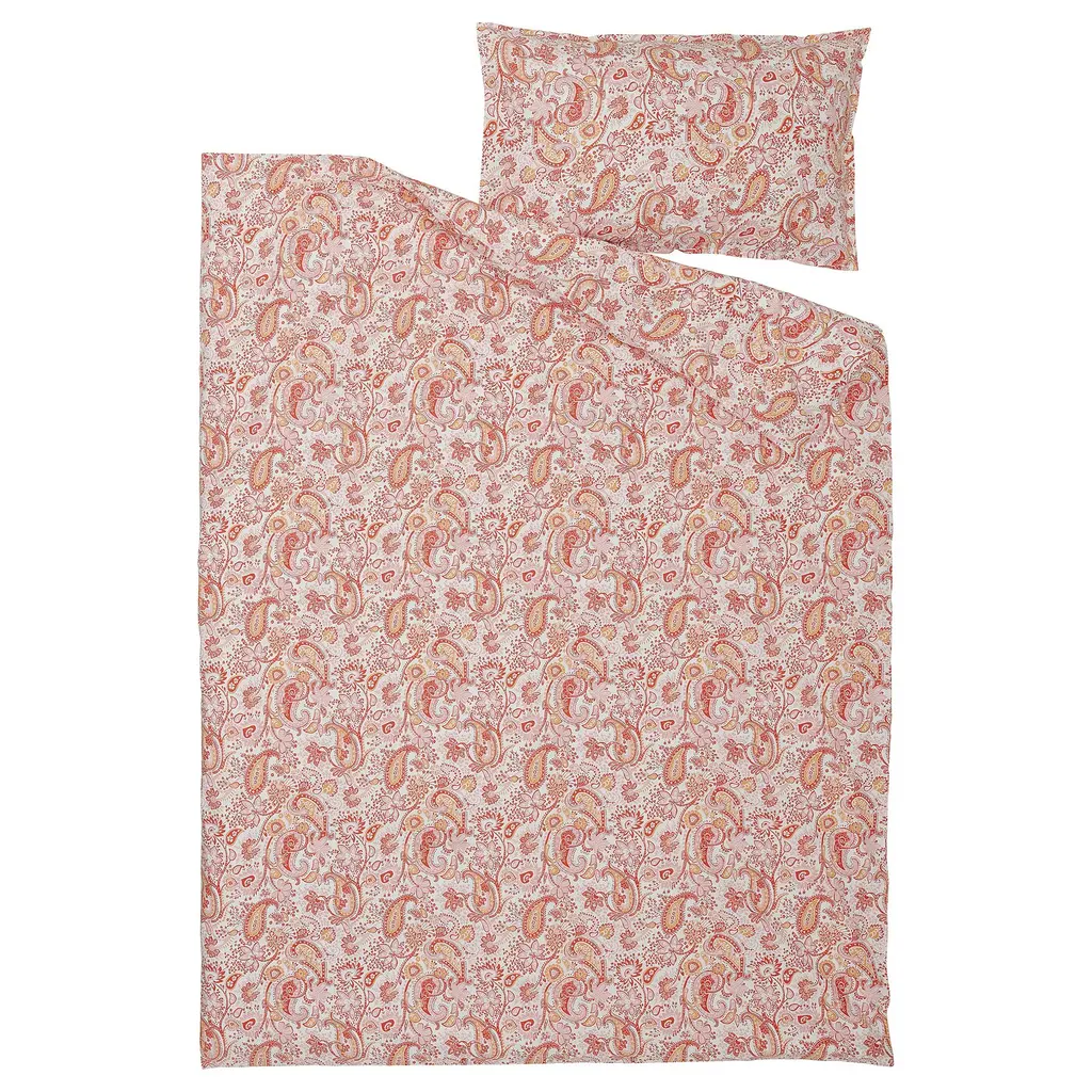 RODGERSIA Duvet cover and pillowcase(s) - pink/white Twin. The cotton/viscose blend gives you a soft, silk-like material. The cotton breathes and absorbs moisture while viscose, made from wood pulp, is smooth and has a fine sheen. Decorative, fabric-covered buttons keep the duvet in place.