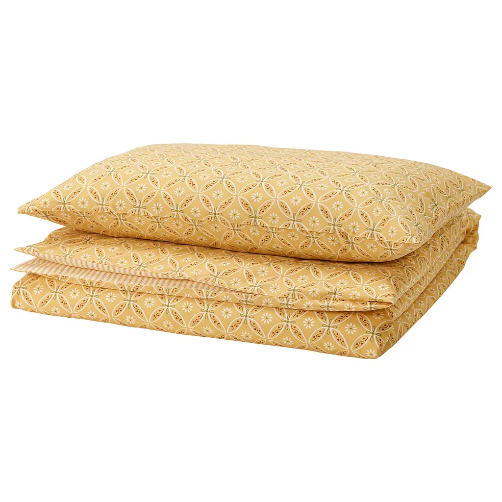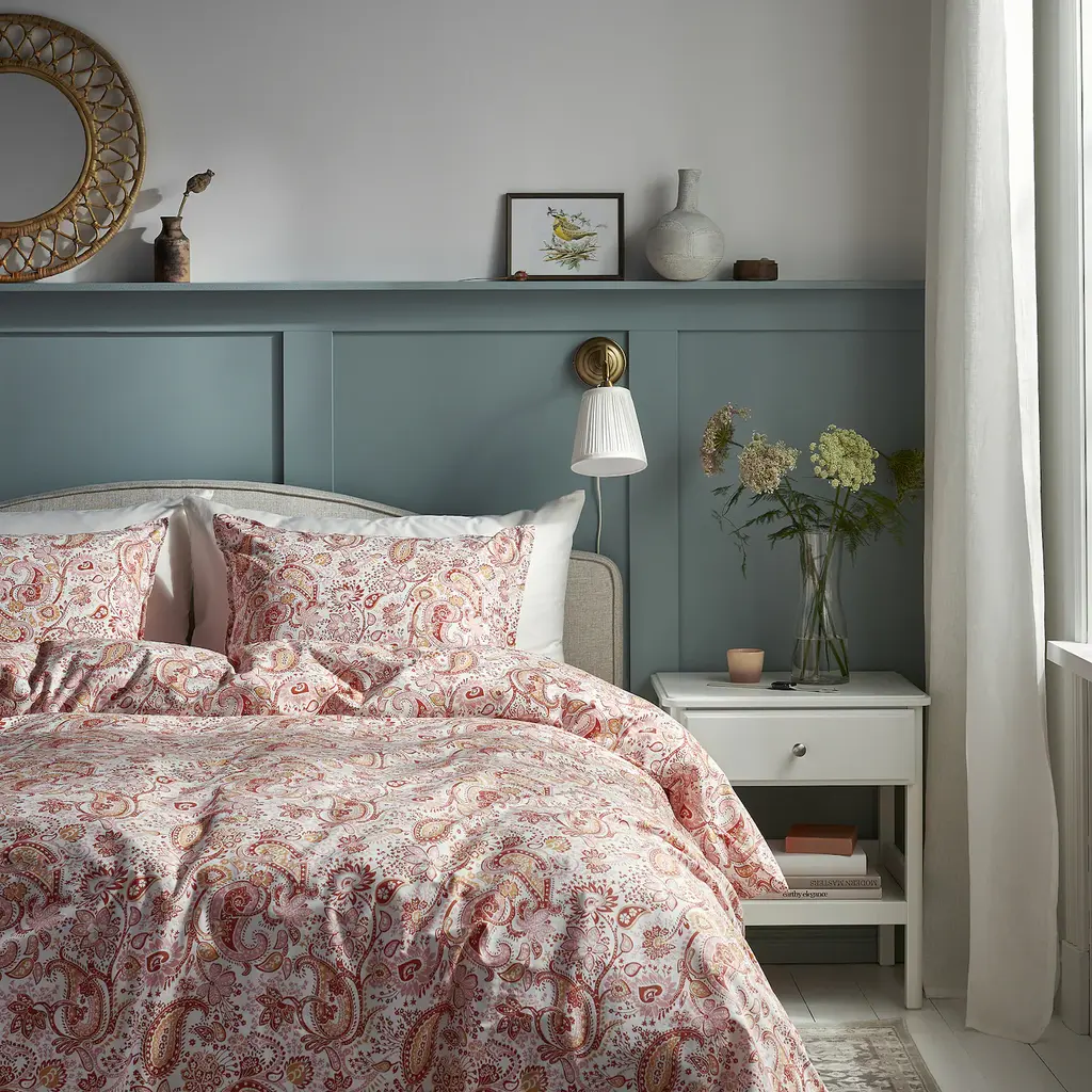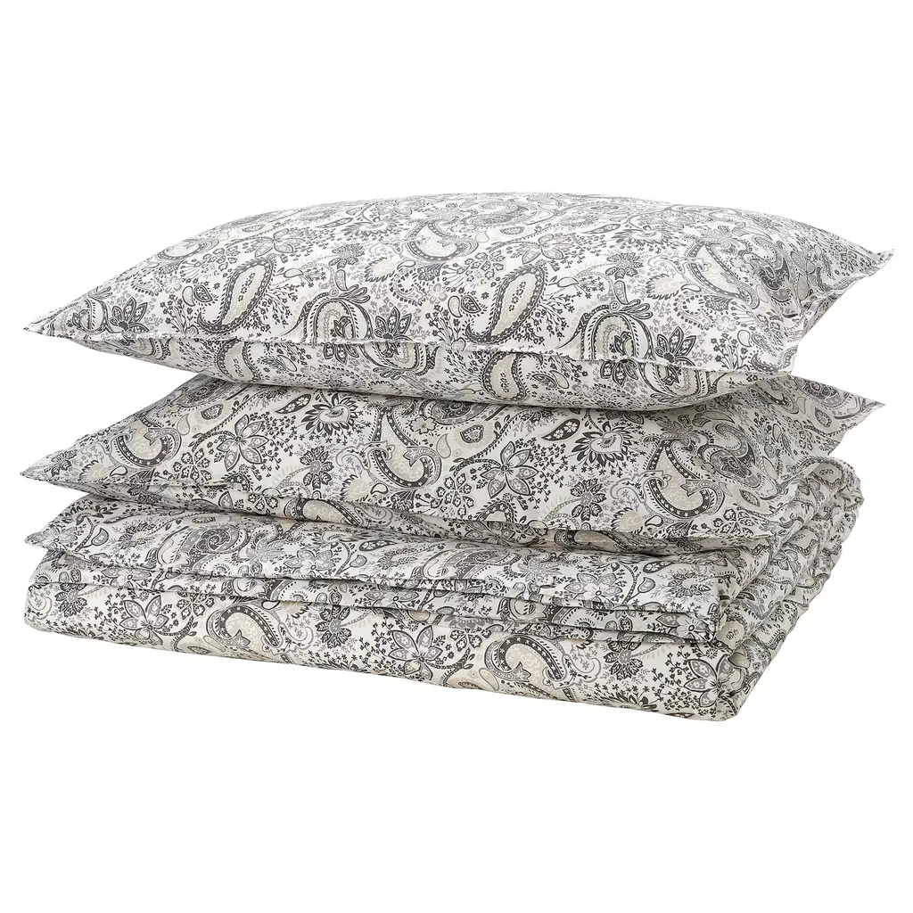 RODGERSIA Duvet cover and pillowcase(s) - pink/white Twin. The cotton/viscose blend gives you a soft, silk-like material. The cotton breathes and absorbs moisture while viscose, made from wood pulp, is smooth and has a fine sheen. Decorative, fabric-covered buttons keep the duvet in place.