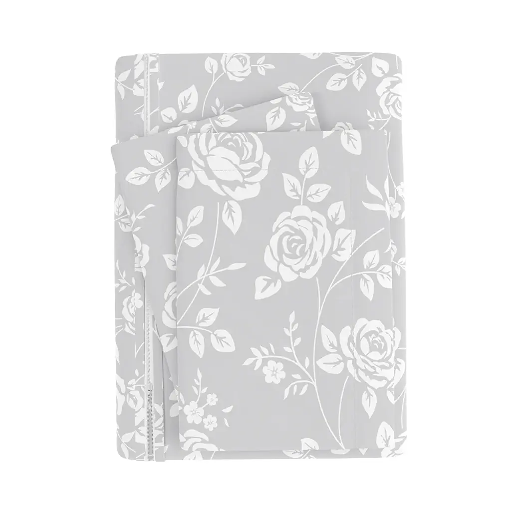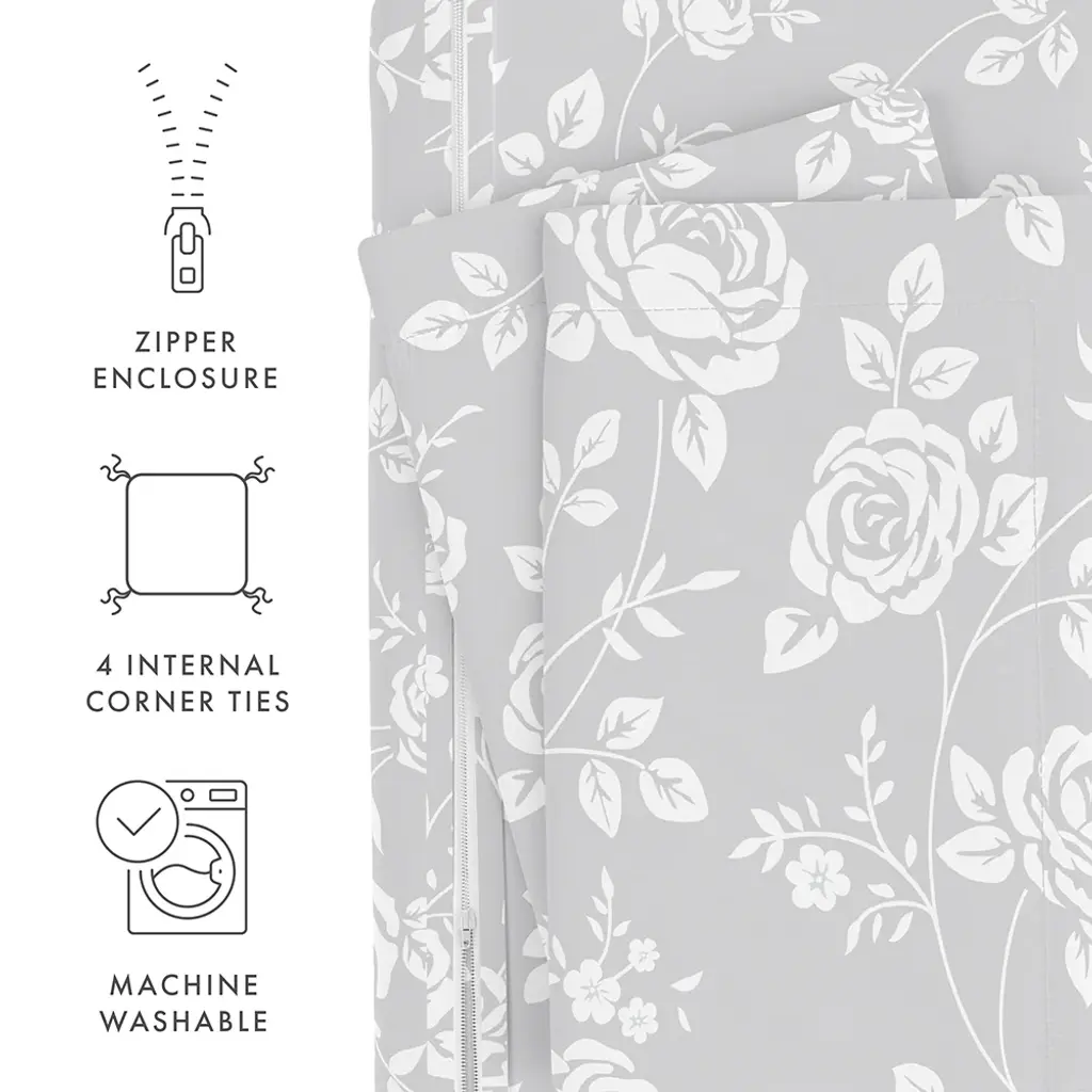 Rose Gray Pattern 3-Piece Duvet Cover Set