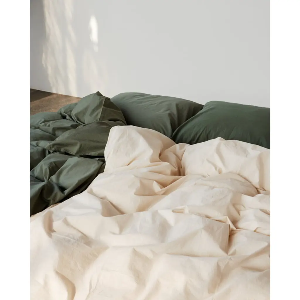 Tekla’s duvet covers make each night feel like you spent it in a luxury hotel! The brand's Oeko-Tex certified bedding is made of high-quality cotton percale, a material often used in hotel bed linens due to its cool and crisp feel. Not only stylish but also functional, the design features practical hand holes that make changeover super easy, while the button closure at the bottom adds a small decorative touch. The duvet cover also features hidden ties that help keep the comforter from bunching up inside the cover. Made sustainably just outside of Porto, Portugal, Tekla’s cotton percale bedding is treated with a light stonewash that gives them a lovely matte finish.