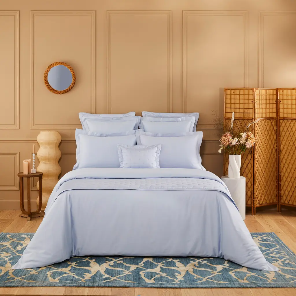 Soft as silk, the Triomphe bedding collection from Yves Delorme is an expression of classic luxury. Crafted from fine Egyptian combed cotton with a luxurious sateen finish, the sheets, duvet cover and coverlet feature a raised double-saddle stitch border for an interesting accent.