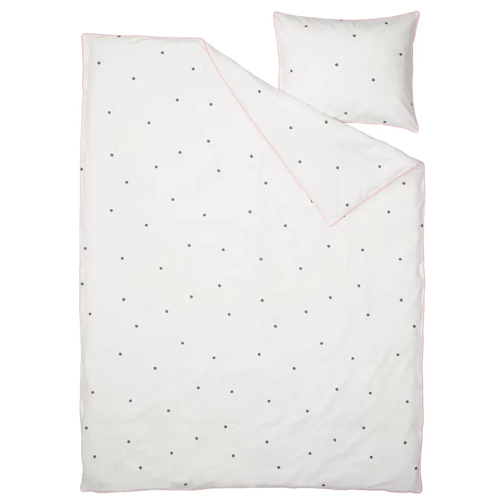 VÄNKRETS Duvet cover and pillowcase(s) - dot pattern white/pink Twin. Your child sleeps well all night since the cotton/viscose mix absorbs and transports moisture away, which helps the body maintain a comfortable and even temperature. Duvet cover with zipper closing at the bottom. 152 thread count.