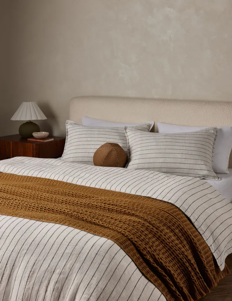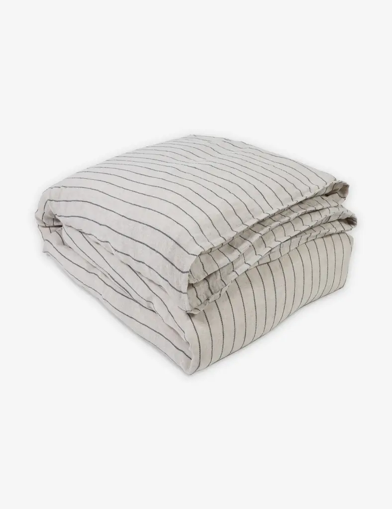 Pom Pom at Home offers superior linens and textiles made with the highest quality natural fibers for that relaxed, lived-in feel. This soft linen duvet cover is hand-loomed with an interwoven stripe for a clean, minimalist style. Subtle texture within the fabric creates a mellow, inviting space to sleep and relax.