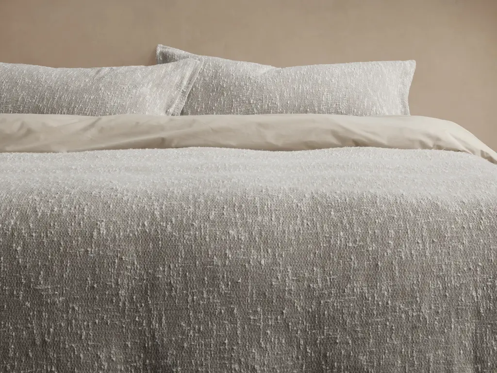 Add premium texture and toasty warmth to your bedroom suite with our Boucle Collection, featuring a dimensional weaving technique that’s lightweight yet cozy. Crafted from yarn soft-washed and dyed with neutral color tones by expert textile artisan partners in India, each Boucle piece complements any décor aesthetic with understated elegance.