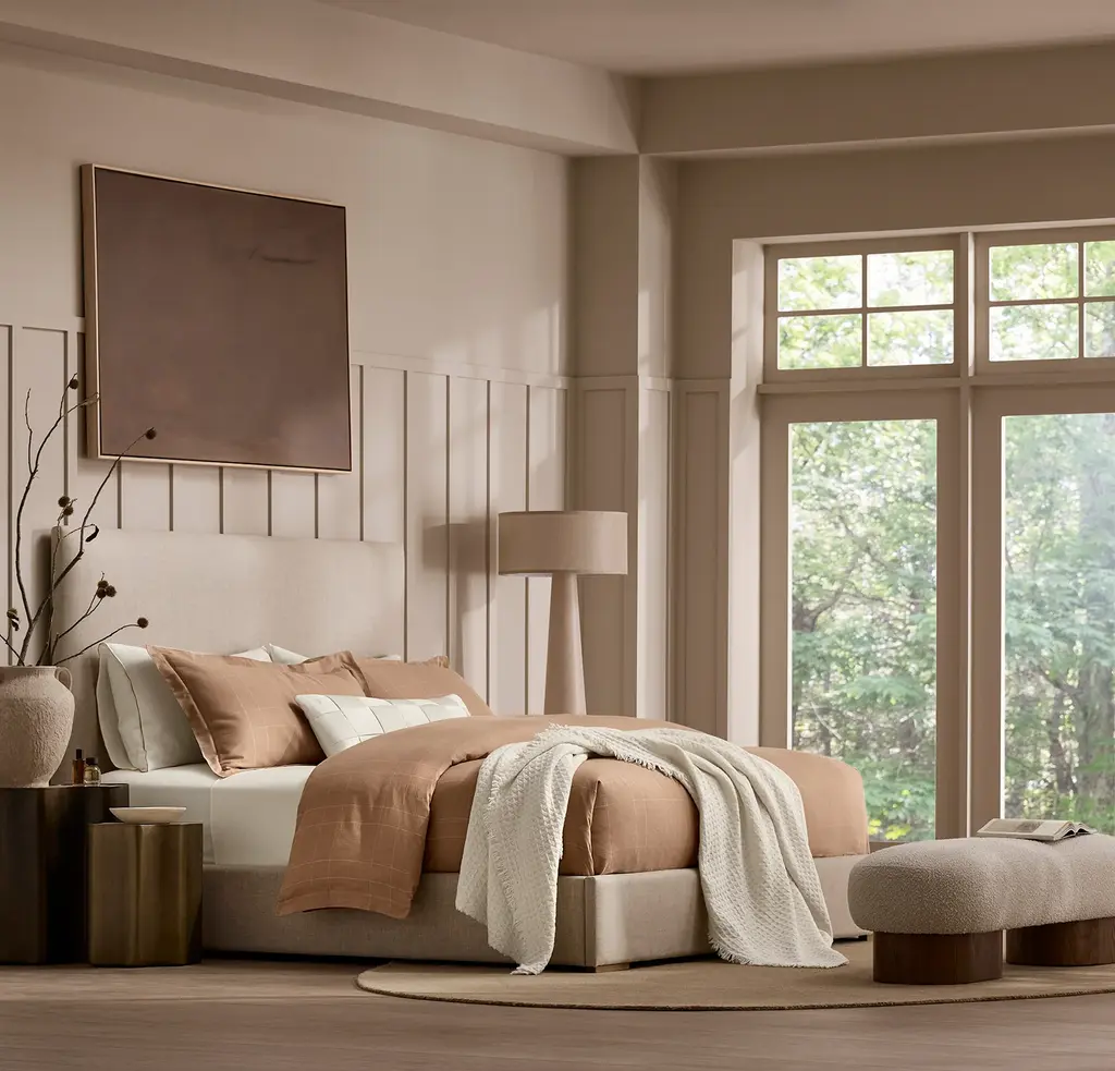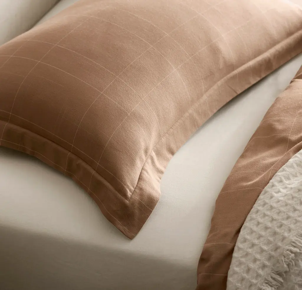 Experience a feeling that's otherworldly: the singularly delicate touch of cashmere with the finest organic Turkish cotton on earth. Our Elysian Cotton Cashmere is crafted with our coziest weave to create an experience that's breathable, warm, and endlessly elegant. The deconstructed plaid design evokes a sense of refined minimalism, with tonal yarns dyed for richer dimension. Brushed for a silky softness, this Duvet Set transforms your bed into a cocoon of luxury. The Feel Delicate softness with a breathable warmth The Look A soft, tonal plaid with a minimalist sophistication