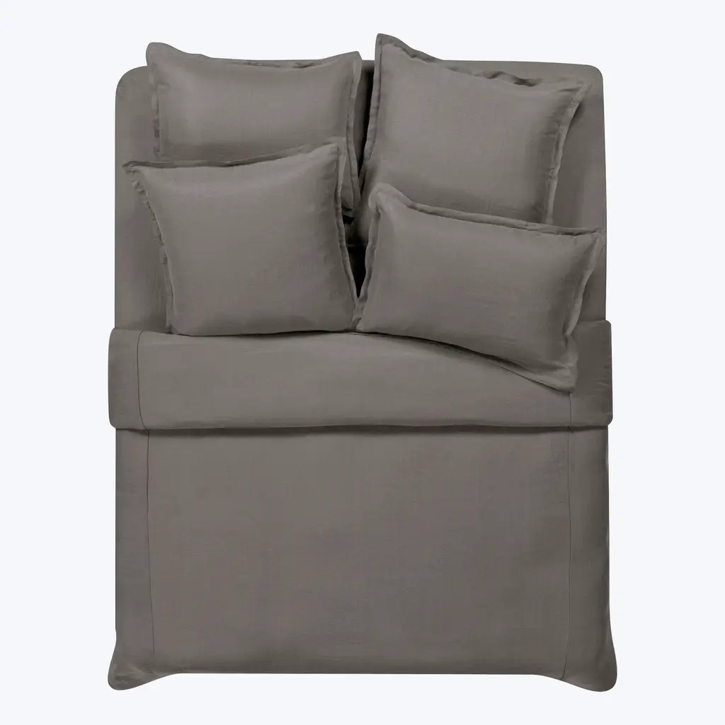 The Helios Linen Duvet Cover offers understated elegance and casual sophistication, designed to elevate your bedroom with its luxurious comfort. Crafted in Turkey from a sustainable blend of 42% Cupro and 58% Linen, this duvet cover combines eco-conscious materials with a soft, wrinkle-free texture that creates clean lines and a polished look.Available in eight tranquil colors and sizes of Queen or King, this duvet cover ensures a perfect fit for your space and style. Measuring 90" x 92" for Queen or 106" x 92" for King, the rich natural shades add a serene, calming atmosphere to your room, offering both comfort and long-lasting aesthetics for restful, luxurious sleep.