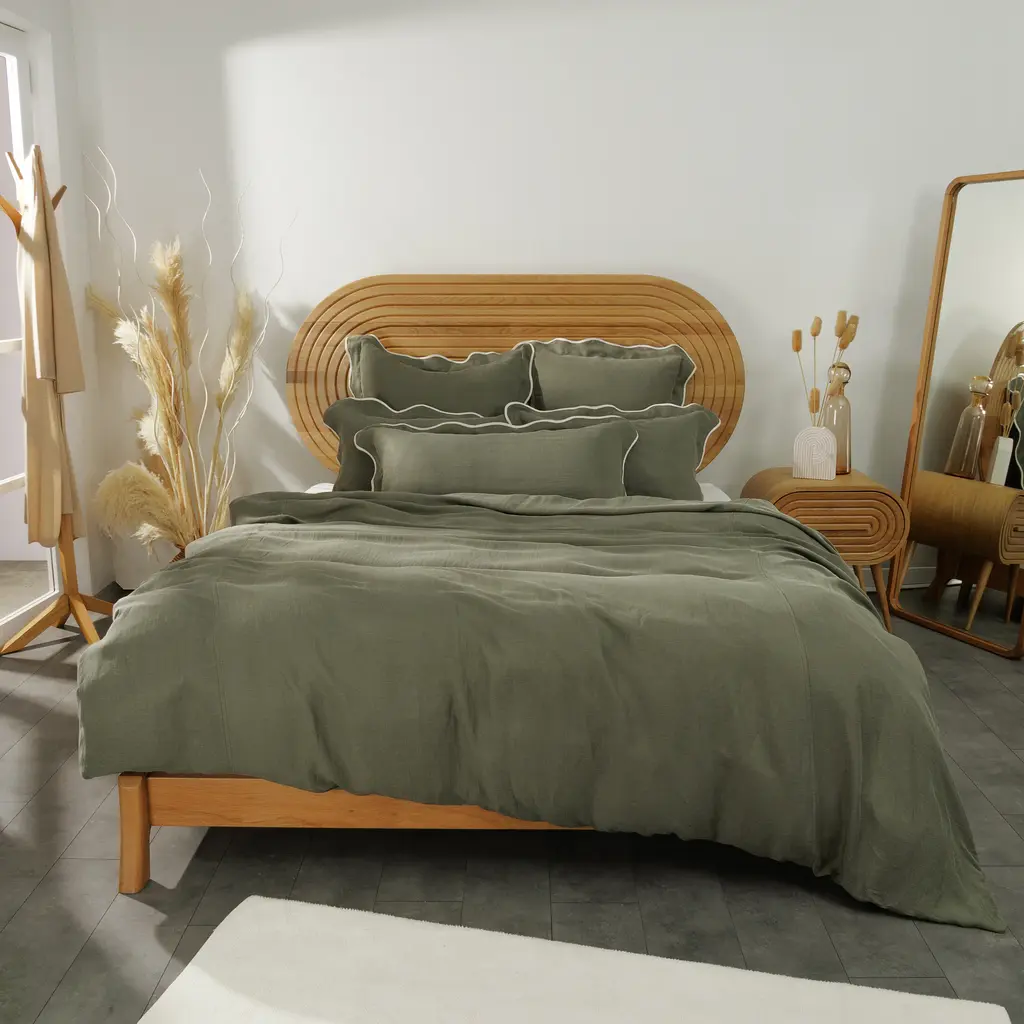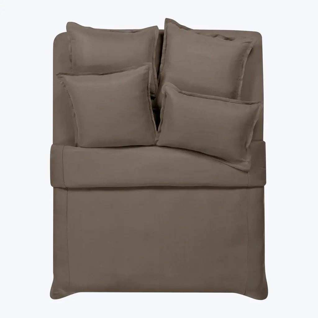 The Helios Linen Duvet Cover offers understated elegance and casual sophistication, designed to elevate your bedroom with its luxurious comfort. Crafted in Turkey from a sustainable blend of 42% Cupro and 58% Linen, this duvet cover combines eco-conscious materials with a soft, wrinkle-free texture that creates clean lines and a polished look.Available in eight tranquil colors and sizes of Queen or King, this duvet cover ensures a perfect fit for your space and style. Measuring 90" x 92" for Queen or 106" x 92" for King, the rich natural shades add a serene, calming atmosphere to your room, offering both comfort and long-lasting aesthetics for restful, luxurious sleep.