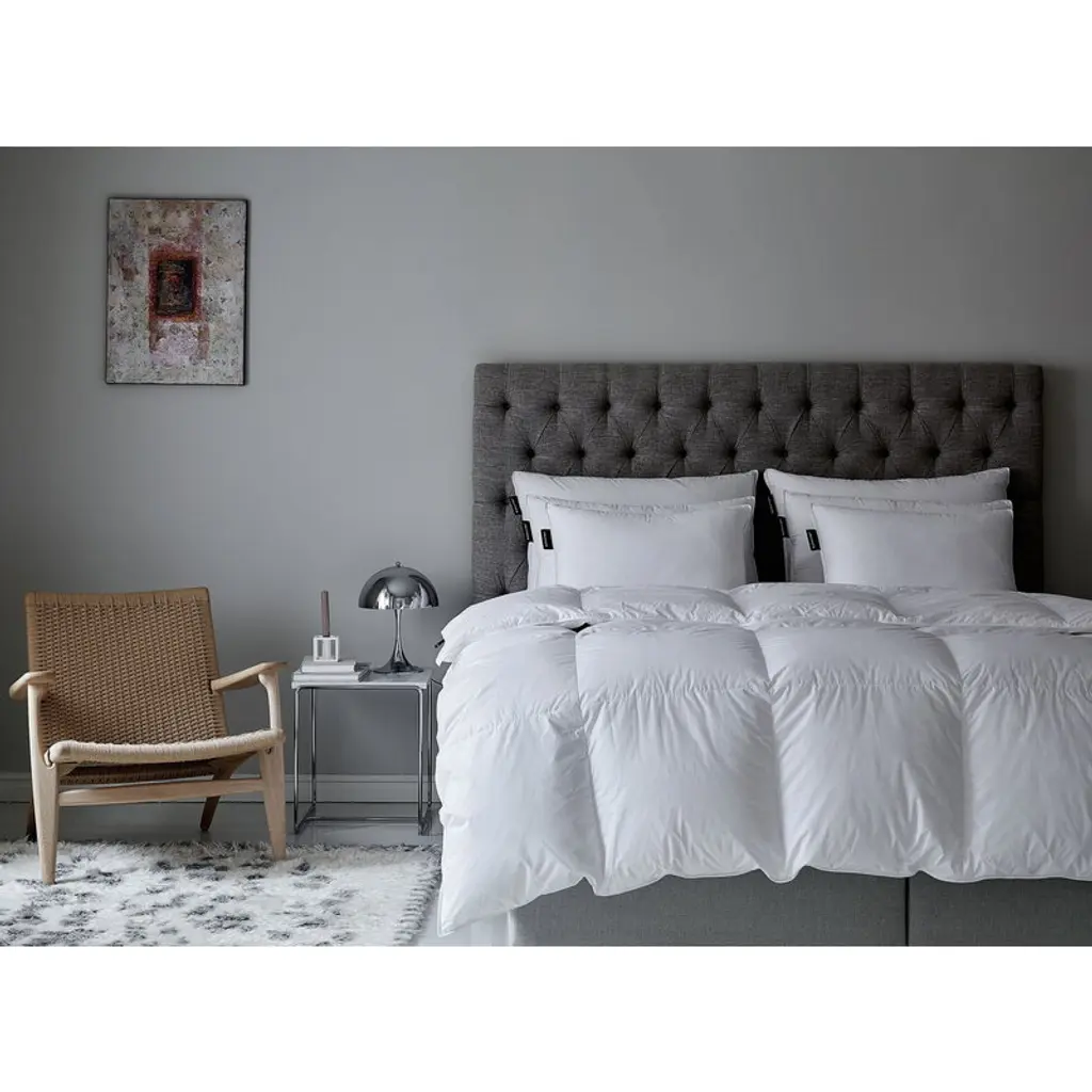 The Jalo down comforter by the Finnish brand Joutsen is the perfect choice for anyone who enjoys natural materials and an extra luxurious feel. The 100% down filling is both warm and breathable, allowing the temperature under the duvet to stay comfortable all night. The fabric used in the duvet is a fine cotton batiste with a high thread count. The warm Jalo duvet is best suited for those who prefer to sleep in a cool temperature or just enjoy extra warmth. The down used in the Joutsen products is meticulously cleaned, dust-free and non-allergenic, and the products have been granted the Allergy Label by the Finnish Allergy, Skin and Asthma Federation. The Joutsen bedding is manufactured in Finland.