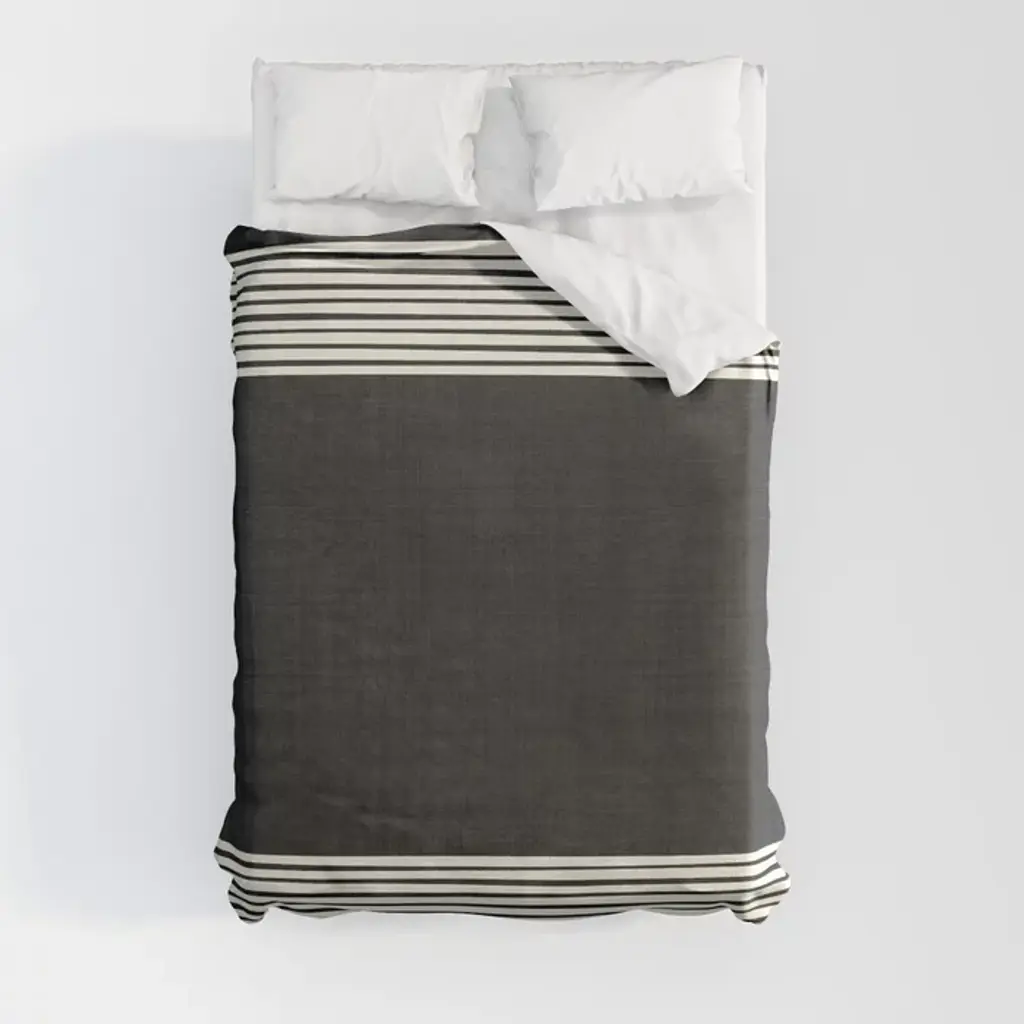 Give your bedding instant style by upgrading to our Landon duvet set. This set features a subtle blue and beige striping that creates a natural appeal perfect for any bedroom. The queen/full set includes one unfilled duvet and two standard shams, while the twin set includes one unfilled duvet and one standard sham.