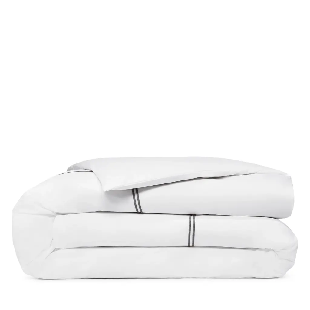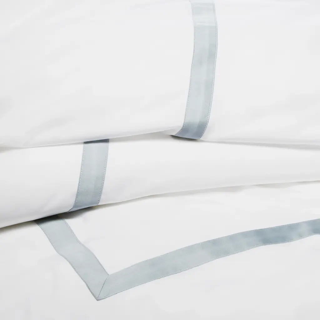 Matouk pairs fabrics of superlative quality with embroidery and couture-level detail to create luxurious bedding and linens. Matouk's rich history of old world techniques and passion for innovation infuses refinement into every collection. A classic bedding collection in crisp, white 600-thread count Egyptian cotton percale with a tape border in muted hues. A coordinating coverlet features an all over pearl matelasse design.