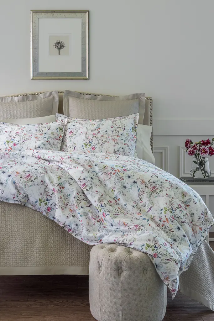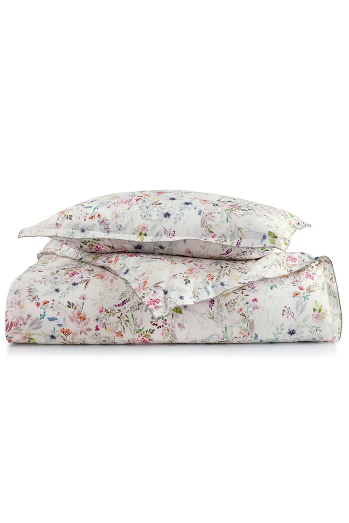 You can almost smell the spring air with Chloe’s enchanting wildflower print design. The 100% long staple cotton percale duvet cover has an overlock stitch detail in platinum thread. Mary Ella Gabler founded Peacock Alley 45 years ago with a passion for creating beautiful textiles. She has built one of the first woman-owned, woman-operated multi-million dollar bedding brands in America. Peacock Alley is known for bedding and bath linens that are crafted with pride and precision to stand up to real life, and get even better with time. Button closure 100% Cotton Machine wash cold; tumble dry low Imported * Dimensions * Twin: 68" x 90" Queen: 90"x 90" King: 105"x 90" Looking for the sweetest of dreams? Read our guide to find the perfect bedding for you, and learn how to care for it season after season.