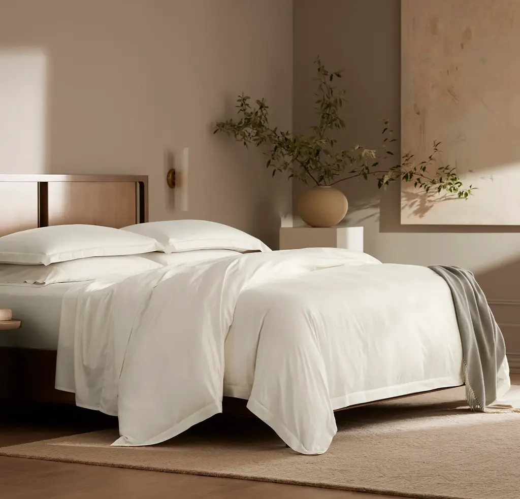 Smooth and structured like a crisp button down shirt, this duvet set is luxuriously made with our special cooling weave. We source the finest long-staple 100% organic cotton on earth and meticulously spin each thread with precision to ensure these sheets feel incredible for years to come. The Feel Refreshing thanks to its specially cooling weave The Look Smooth and structured like a crisp button down shirt