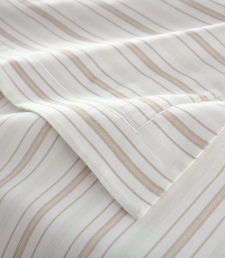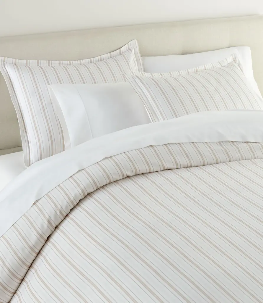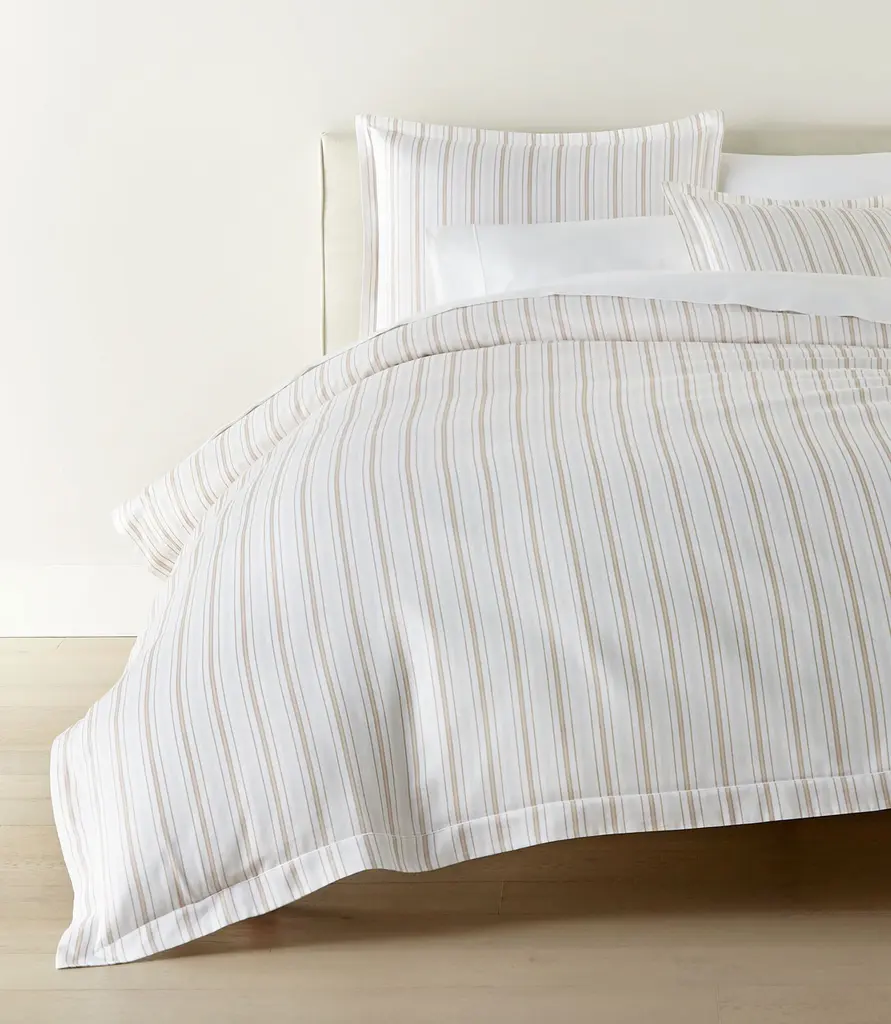 Transcending time and trend, the Shelby Duvet Set features a classic stripe design created to feel both timeless and refined. Expertly crafted in Portugal from 100% cotton sateen for a silky-soft hand and elegant drape, our duvet sets complement a variety of bedding looks.