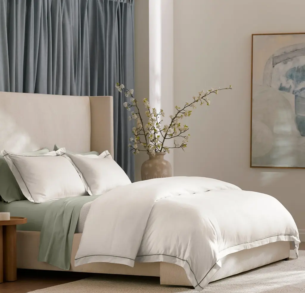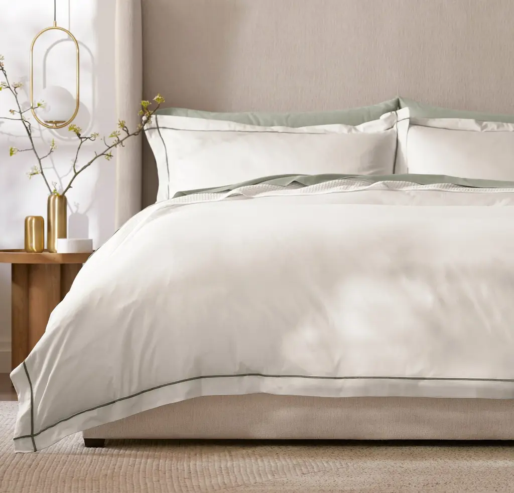 Define your style with one of our hand-finished embroidered designs, all in our bestselling fabric. This duvet set is buttery, breathable and gets softer with every wash. It starts with the highest quality threads sourced from the finest long-staple 100% organic cotton on earth. Each thread is then luxuriously woven to ensure this duvet set feels incredible for years to come. The Feel Buttery, breathable, softer with every wash The Look Gentle drape with a soft sheen