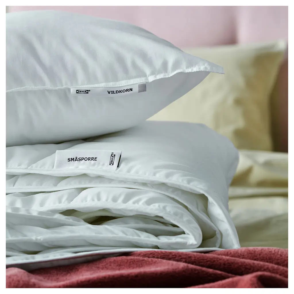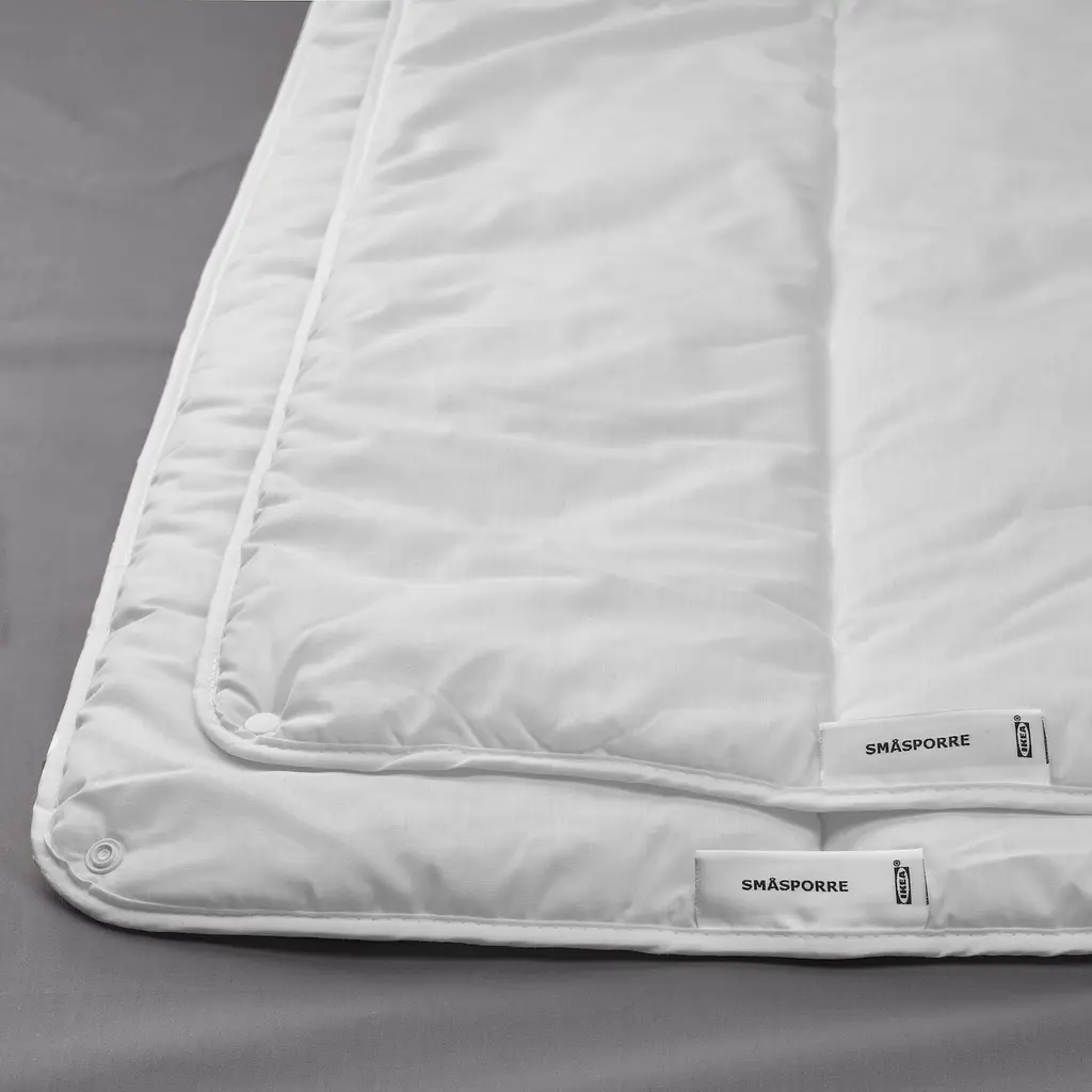 SMÅSPORRE Duvet insert, all seasons Full/Queen. An easy-care, all-season comforter in a cotton and polyester blend with a soft hollow fiber filling from recycled sources. A good choice if you want to vary the warmth of your comforter depending on the season. 186 thread count.