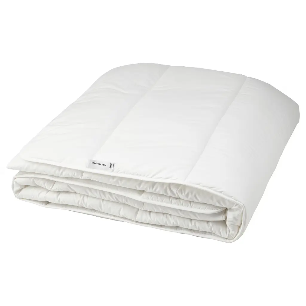 STJÄRNBRÄCKA Duvet insert, warm King. A warm, easy-care comforter in a soft cotton and lyocell blend, filled with a mix of lyocell and recycled polyester. You experience a comfortable and dry sleep since the comforter contains lyocell fibers which breathe and absorb moisture. 236 thread count.