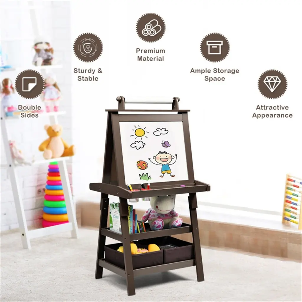 3-In-1 Brown Double-Sided Storage Art Wooden Easel With 2-Tier Storage Shelves - 23.5" X 19.5" X 46" (L X W X H) - 23.5" X 19.5" X 46" (L X W X H)