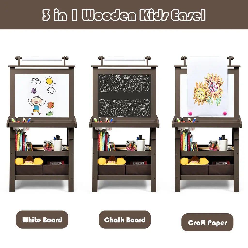 3-In-1 Double-Sided Art Easel With Storage - Coffee
