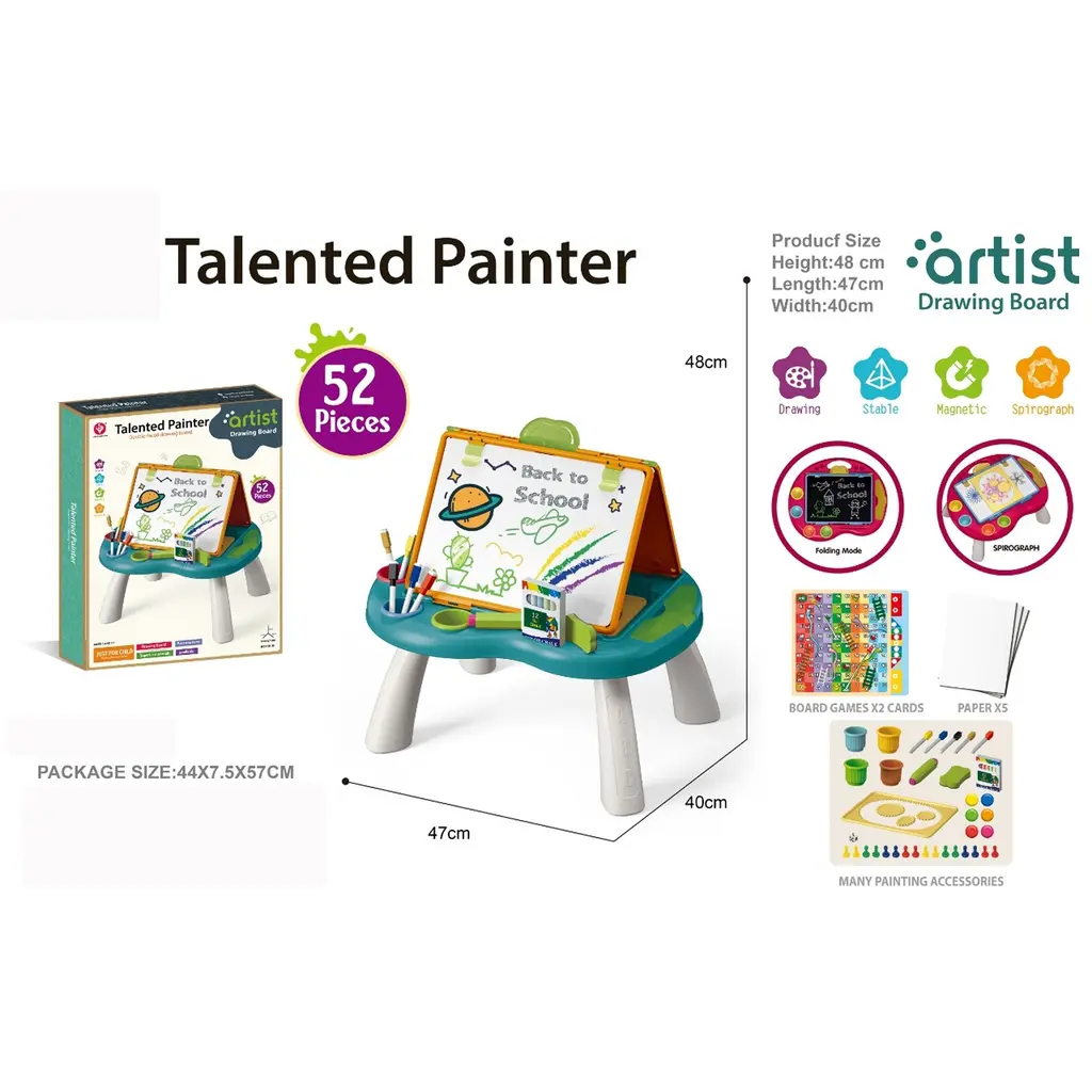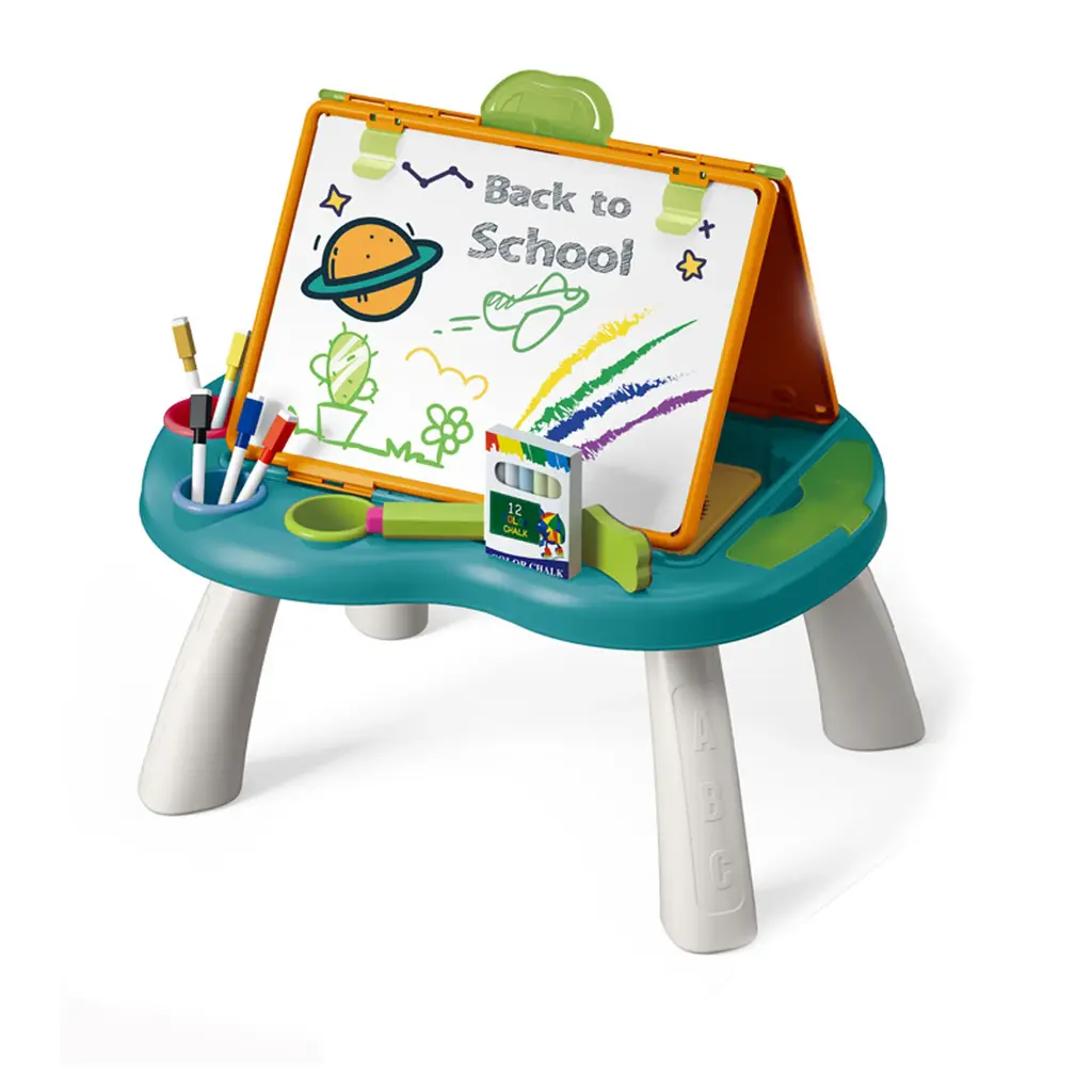 Activity Easel With Dry Erase Board This popular two-sided easel features a dry-erase board on one side and a chalkboard on the other giving your child a variety of options. Kids will love creating art work on their own new whiteboard. Durable child-safe paint finish and sturdy ABS construction make this a toy your child will love for years to come. Standing easel for painting, coloring, drawing, and more. Double side board. One side is magnetic white board. The other side is chalk board. Package includes dry-erase magnetic whiteboard chalkboard, dry erase pen and eraser, chalk, crayons and all Your Other Art Supplies Encourage kids creativity. Allow hem to explore and develop their creativity Help develop kids social skills.