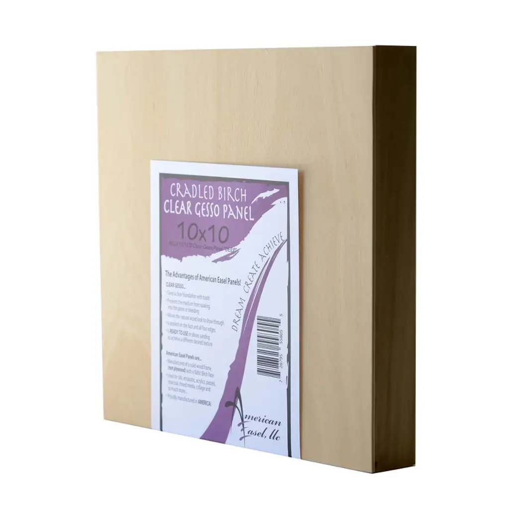 These American Easels wood clear gesso primed painting panels give you a firm painting surface, providing you with an alternative to the hassle of stretching canvas. These panels are constructed with a top quality birch face, supported by a solid wood cradle. The cradled frame ensures that your painting will not warp, and makes your finished piece easier to hang. All panels have a cradle measuring 1 5/8 inches deep.