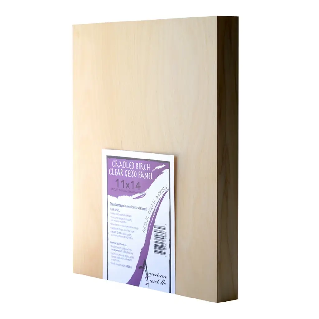 These American Easels wood clear gesso primed painting panels give you a firm painting surface, providing you with an alternative to the hassle of stretching canvas. These panels are constructed with a top quality birch face, supported by a solid wood cradle. The cradled frame ensures that your painting will not warp, and makes your finished piece easier to hang. All panels have a cradle measuring 1 5/8 inches deep.