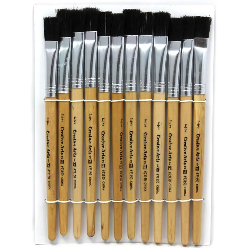 Charles Leonard Flat Black Easel Brushes, 1/4 Inch, Wooden Handle, Natural Bristles - Case Of 6 - 12 Pcs