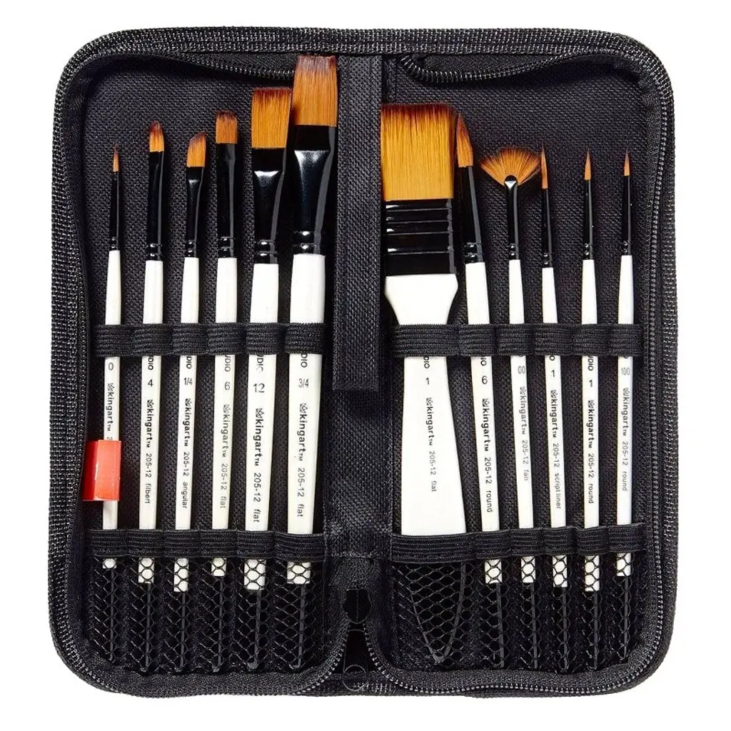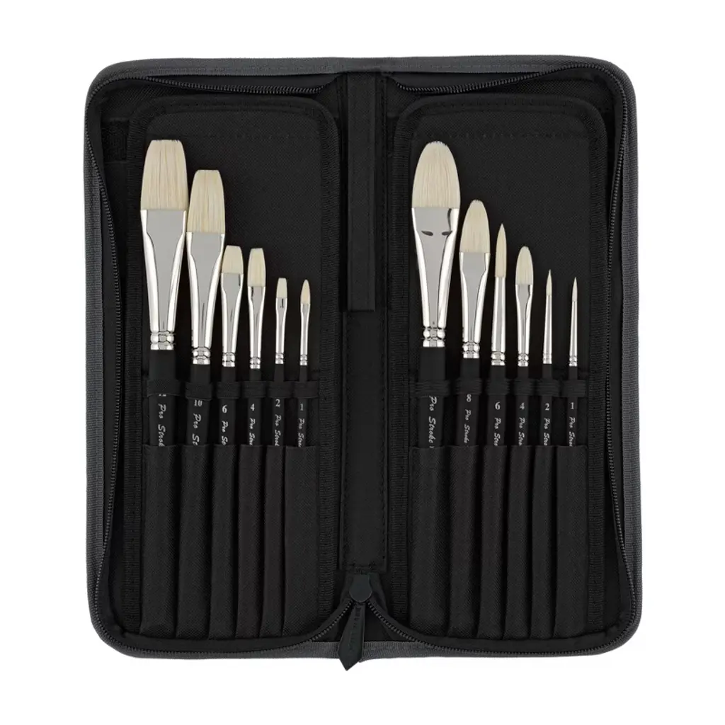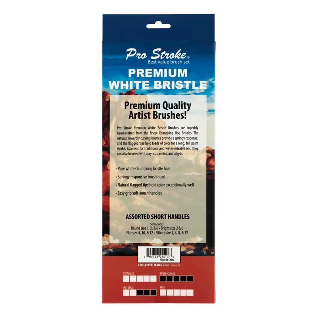 Creative Mark Pro Stroke Premium White Chungking Hog Bristle Artist Paint Brush - Short Handle Set Of 12 With Easel Case - Natural Bristle Brush W/