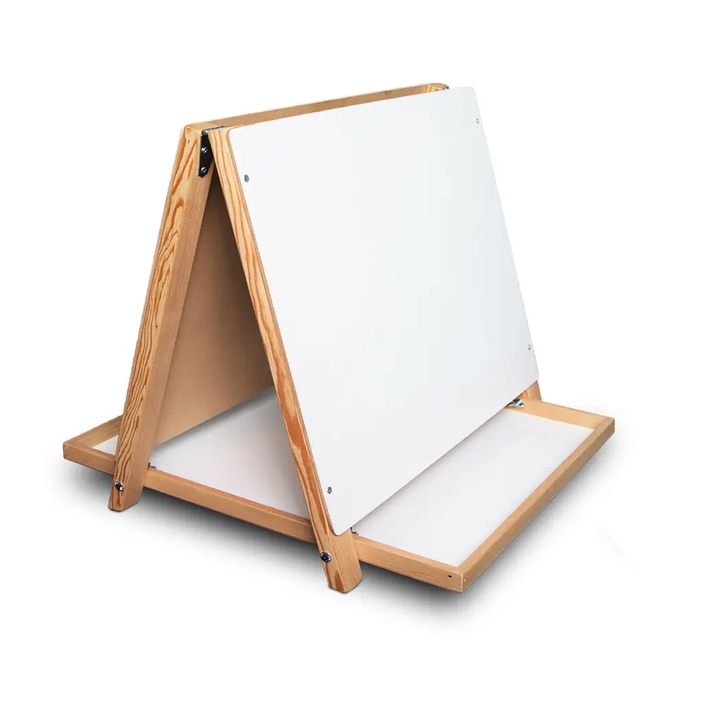 Crestline Products Classroom Painting Easel, 54" x 24" | Great for the young artist, our painting easel features a 24" x 36" dry-erase board that wipes clean. Two sturdy clips and two "S" hooks for hanging single sheets or pads. Back of easel has six dowels to hang and dry your paintings. Includes a rugged plastic tray that holds six paint cups. Folds flat for storage. Measures 54" x 24".