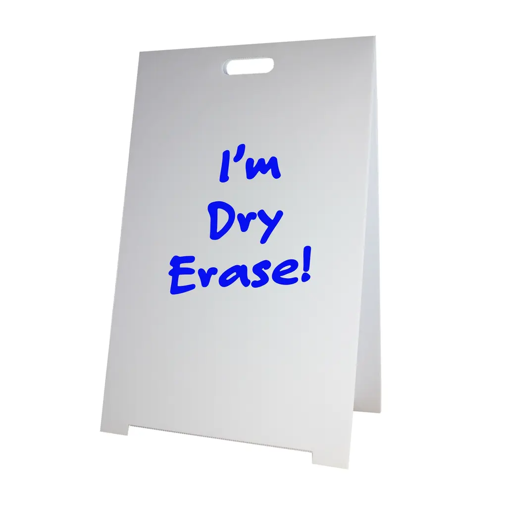 Our Premium Corrugated Plastic Dry Erase Marquee Easel is the perfect sturdy and lightweight solution for displaying announcements, menus, messages, and much more. Constructed from 100% recycled and recyclable corrugated plastic, it is easy to transport and folds flat for storage. Easy to assemble. Non-ghosting dry erase surfaces. Measures 35.5"H x 23"W x 15"D. Convenient handle for transport. Weighs only 2 pounds.