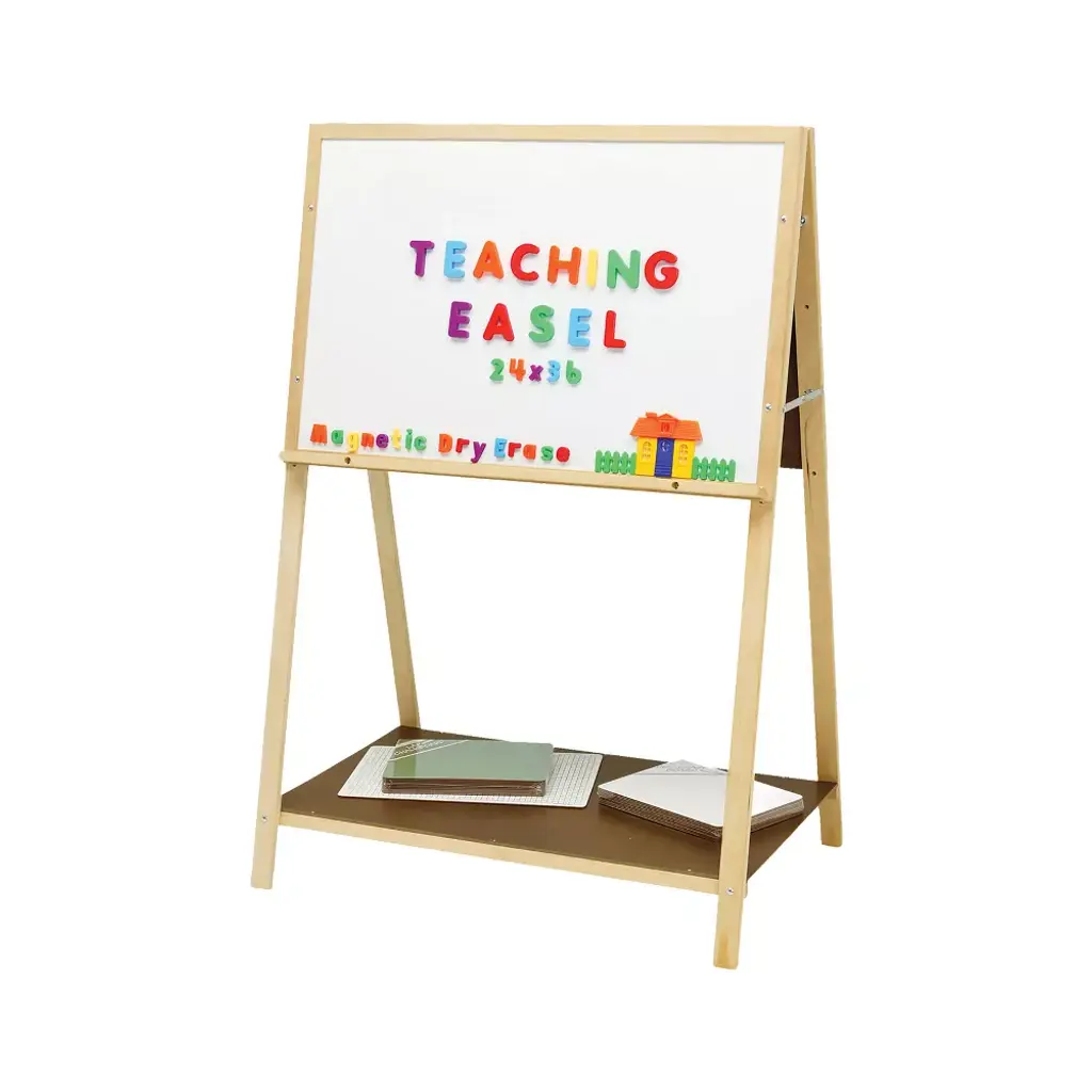 SpecificationsKey Features● 3-In-1 Design: The art easel is matched with a whiteboard, a blackboard and a paper roll. Blackboard enables kids to freely write or draw with chalks. Whiteboard is a good board for them to play magnetic stickers and produce less dust. Apart from that, we provide kids with extra paper rolls to create more paintings. ● Adjustable Heights and Stable Structure: Adjustable stand enables this easel to be a wonderful choice for your fast-growing kids. With 5-gear heights, our easel's height ranging from 31 inches to 41 inches is suitable for kids ages 3 and up. In addition, a triangular-structure easel ensures high stability and sturdiness. ● Abundant Accessories: The easel is equipped with 3 no-drop paint cups, a paper roll, 2 fixed iron clips, 2 pieces of chalk, 3 whiteboard pens (red, black and blue) and an eraser, offering kids a convenient and comfortable experience. Children are free to use all the accessories according to their needs. ● Easy to Assemble and Store: With the help of detailed instruction, you can assemble it quickly in a few steps. With a foldable structure, you can conveniently fold it into a compact size and store it in any corner or box according to your needs, improving space utilization. ● Wonderful Childhood Gift: Parents can enjoy parent-child time with their kids by developing kids' writing and drawing hobbies. It helps kids to build motor skills and inspire their creativity. In addition, kids are able to learn how to properly grip pencils during playing time.