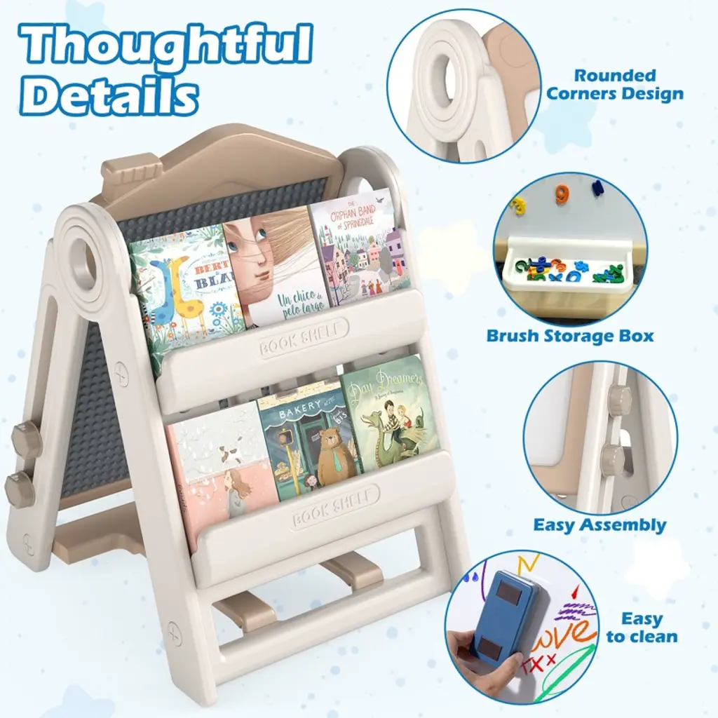 Sugift 3-in-1 Kids Art Easel With Magnetic Whiteboard, Block Table & Bookshelf, Adjustable Height, Foldable Creative Station