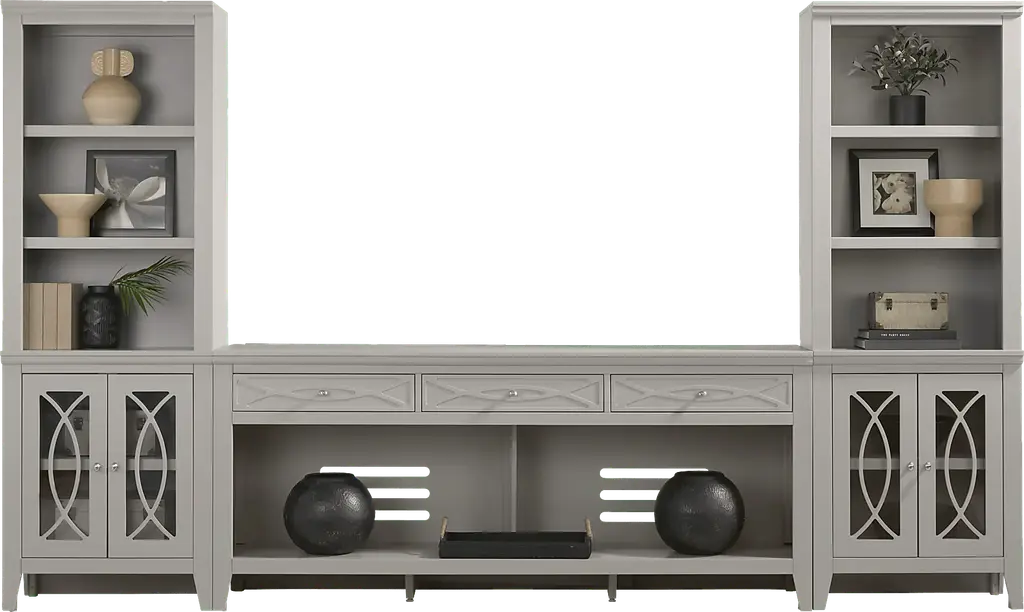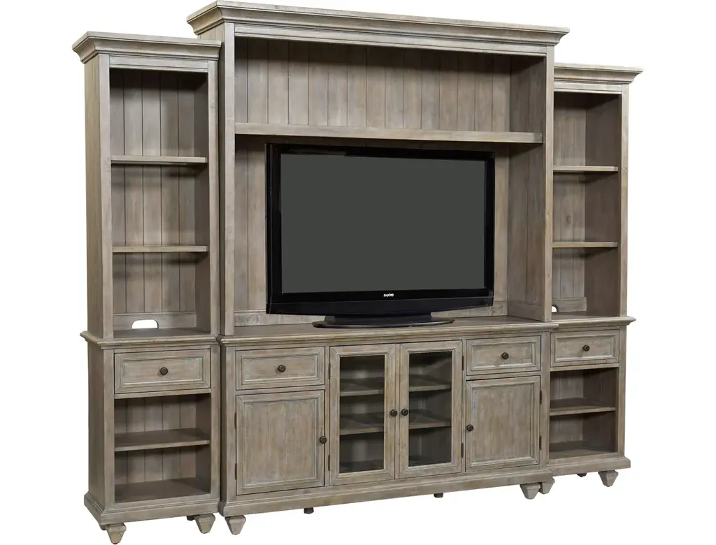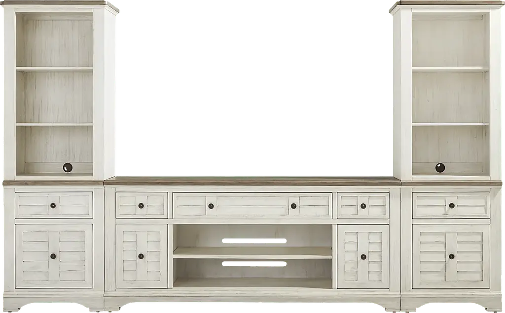 Ainsworth Cream 85" Media Center And Two 30" Towers With Glass/wood Doors
