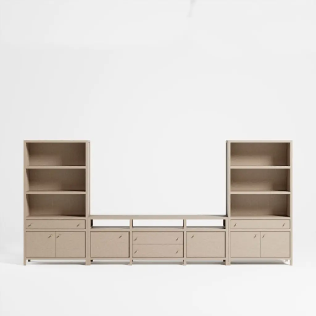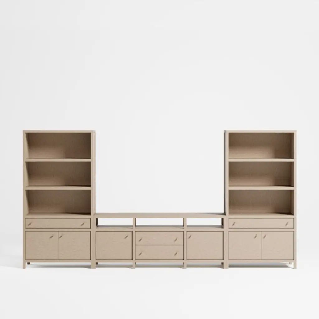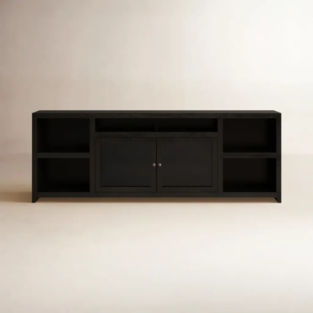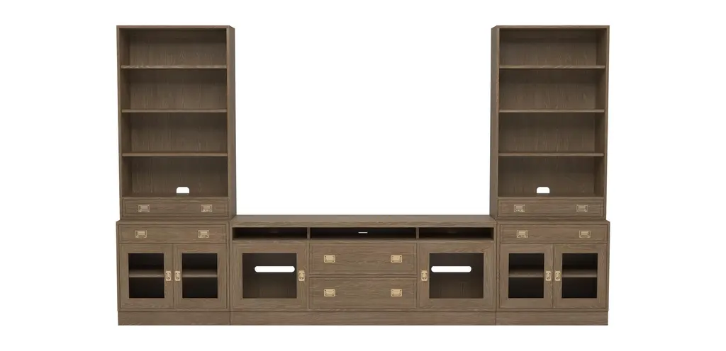 Inspired by British campaign style, our Callum media center is so gorgeous you may end up turning off your shows and tuning in to its stunning good looks. Featuring a mix of glass- and wood-door cabinetry for storing electronics and more, plus an expansive media base with two roomy storage drawers.