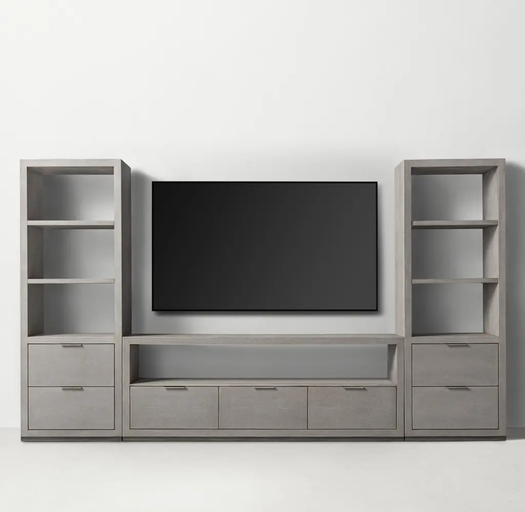 Our collection's shagreen-embossed leather pays homage to the glamour and luxury of old Hollywood, while its crisp silhouette and discreet metal pulls reflect the discipline and refinement of modern design. SHOP THE ENTIRE COLLECTION