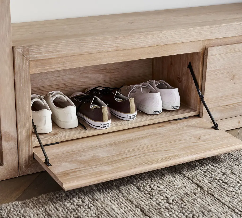 A collection defined by its bold presence, Folsom strikes the perfect balance between streamlined and substantial. The minimalist profile lets the inherent beauty of the wood grain shine through, lending warmth and character to each piece. The bench features drop-front doors to store shoes and is paired with the matching wall shelf and storage towers – perfect for creating an ultra-functional entryway or makeshift mudroom.