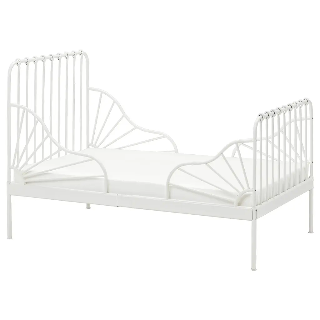 MINNEN Ext bed frame with slatted bed base - white 38 1/4x74 3/4 ". It grows with your child so they always have a bed that fits their size. Both a convenient and practical choice that allows you to easily create the snug sleeping environment that your child needs. Slatted bed base is included.