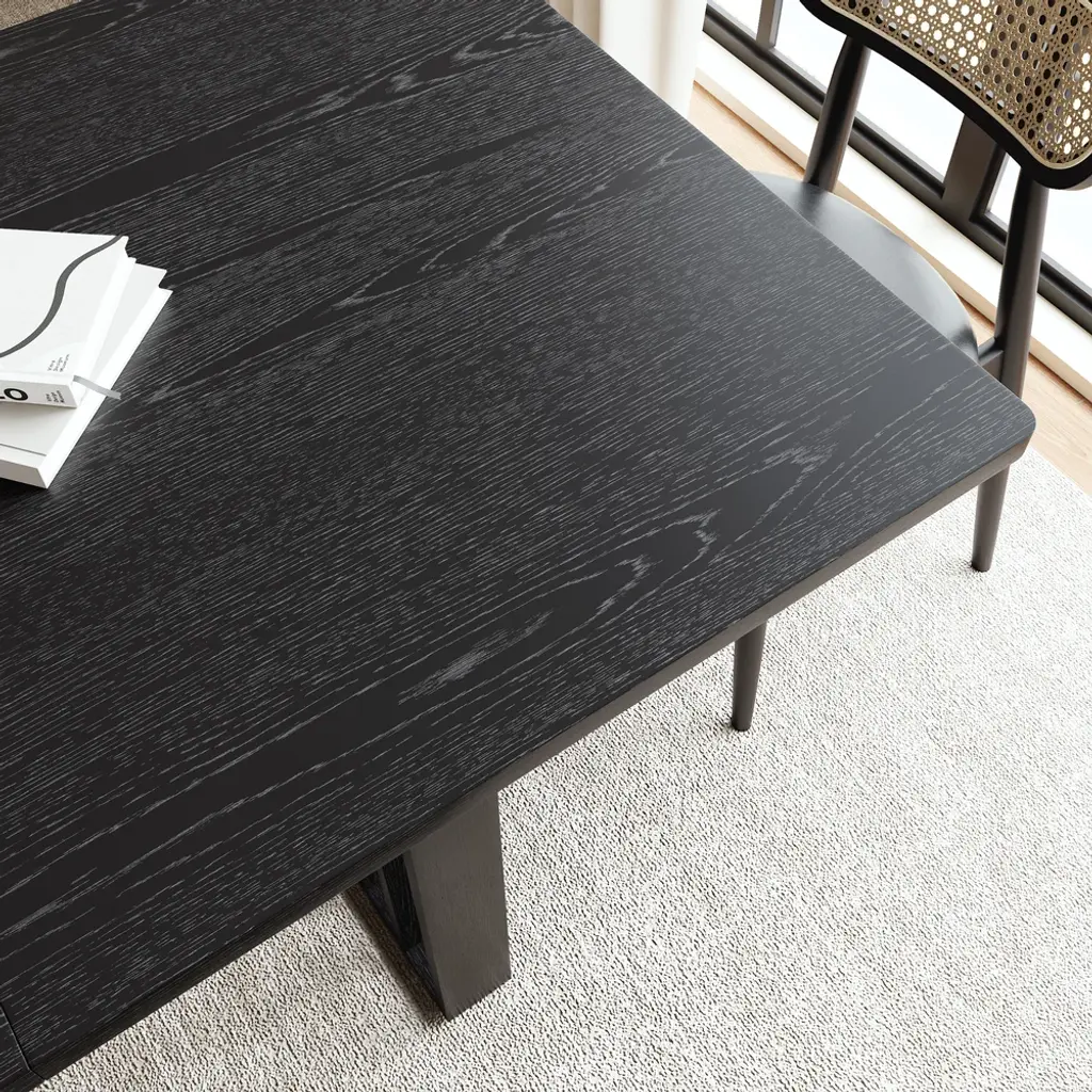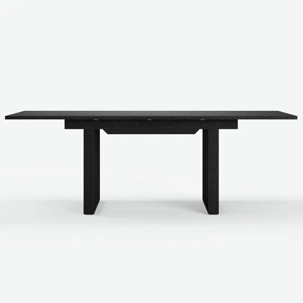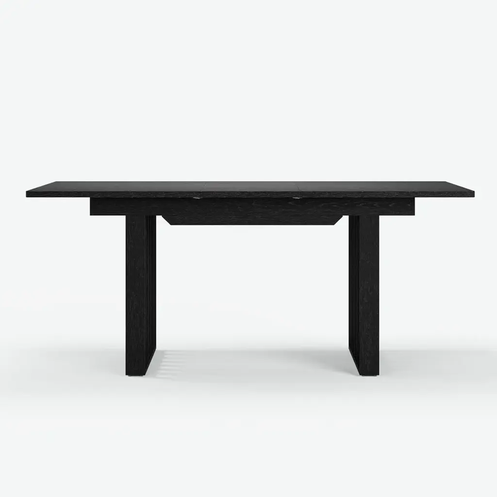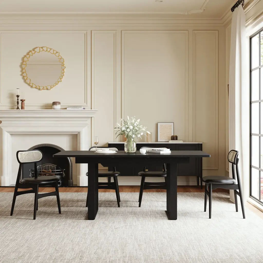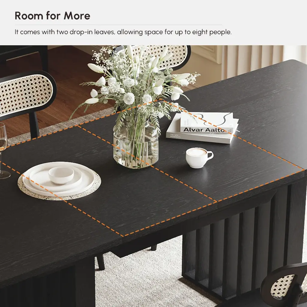 This extendable dining table in sleek black smoothly extends from 55" to 87" and sits 4-8 people comfortably. The modern design, added to its versatile functions, makes it the ultimate choice for intimate dinners to bigger gatherings. It will be perfect in any dining space, blending style with practicality.