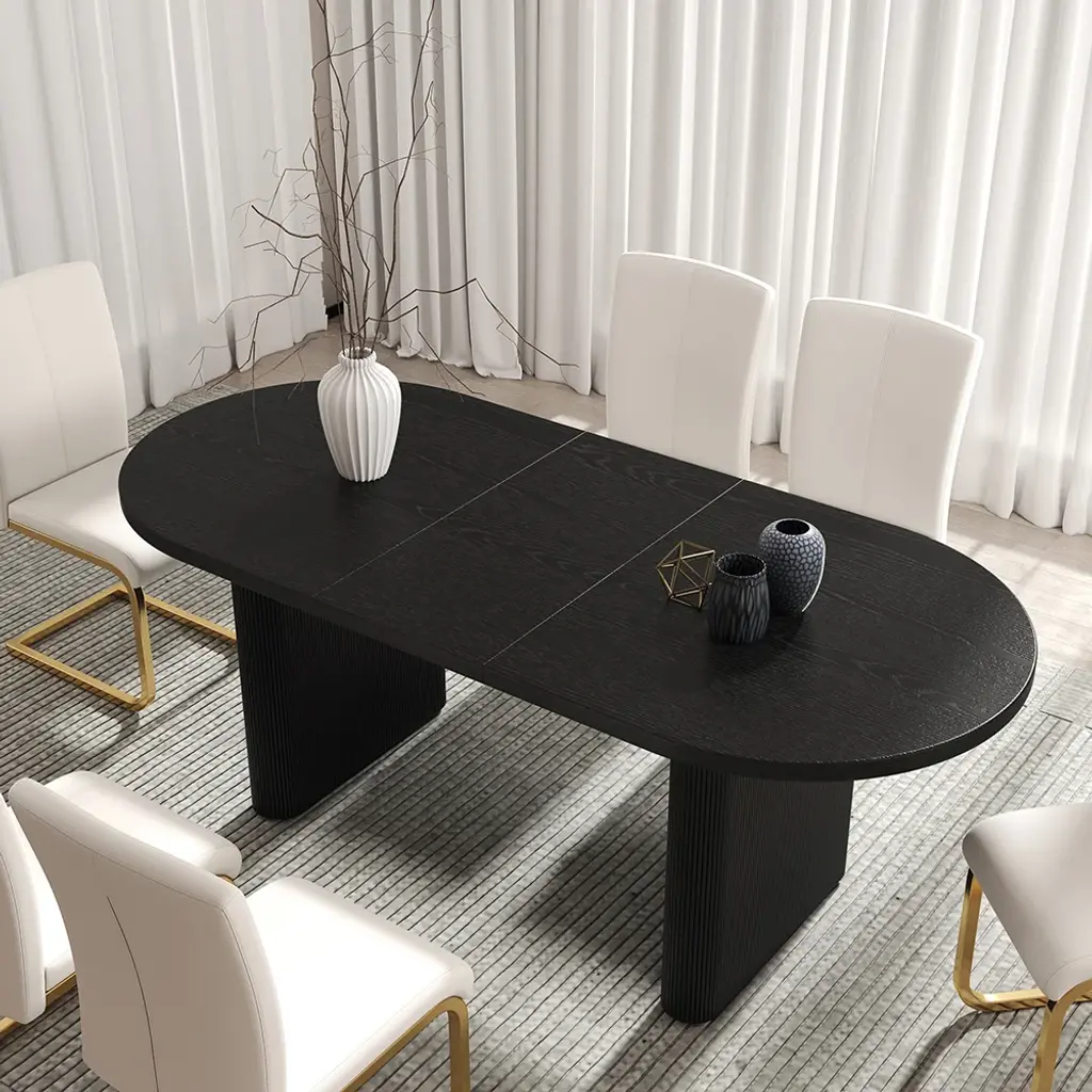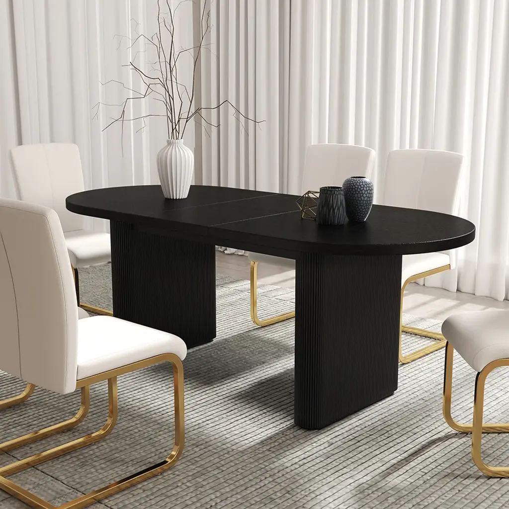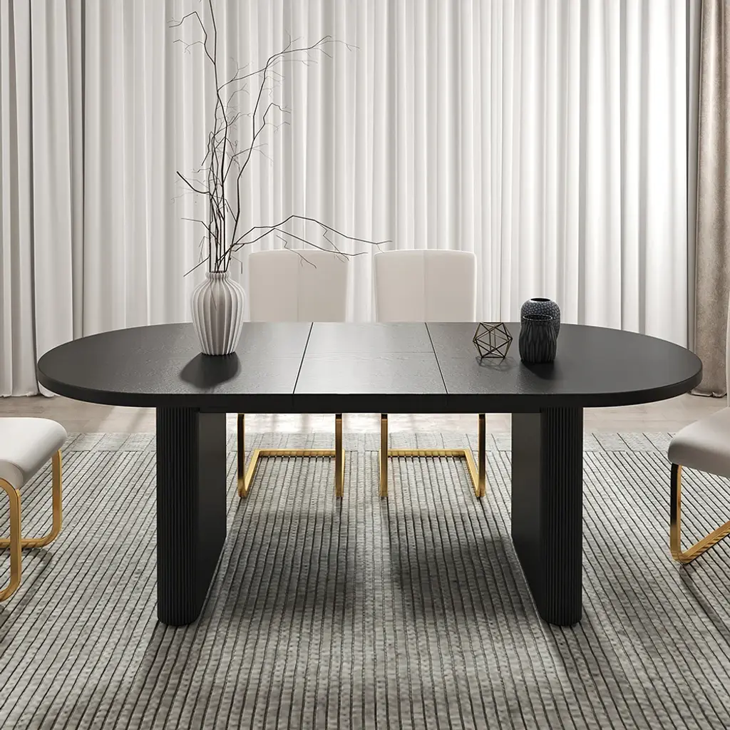 63"-79" Japandi Style Oval Extendable Dining Table Black Seats 6-8 People