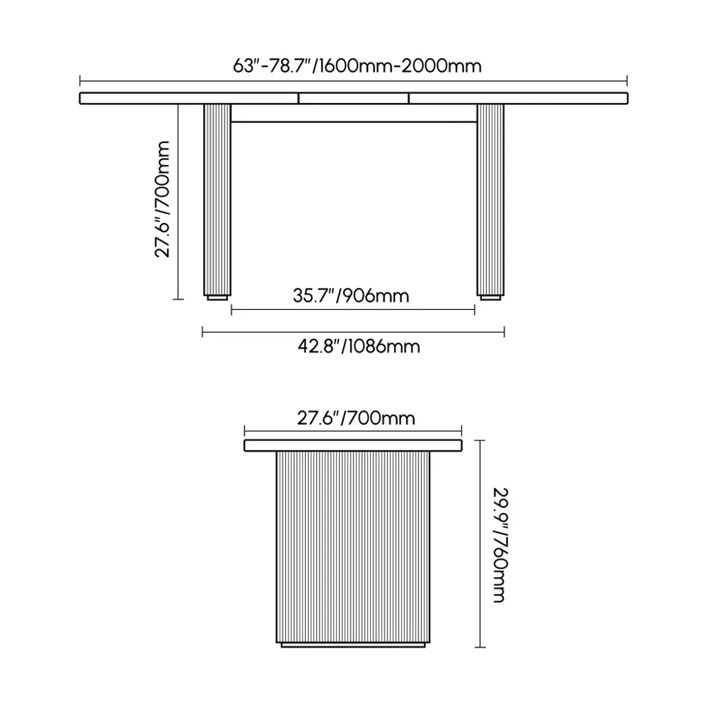 This elegantly designed Japandi-inspired extendable dining table is the perfect blend of style and functionality. Built in a sleek black finish, it boasts an oval shape that extends from 63" to 79" to comfortably sit 4 to 6 guests. The double pedestal base offers stability and a modern touch. Perfect for smaller spaces that could be extended to fit larger gatherings, this table brings functionality and class into your dining room.