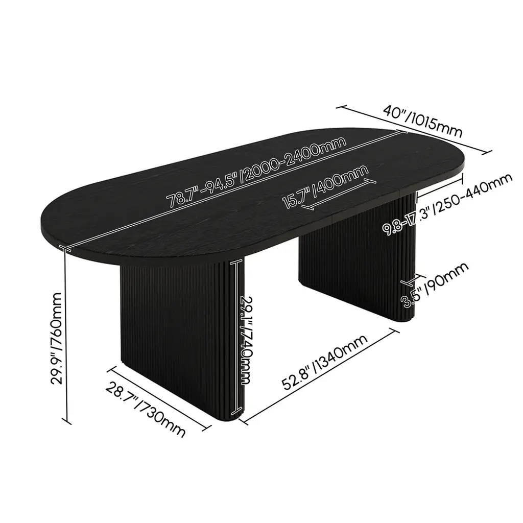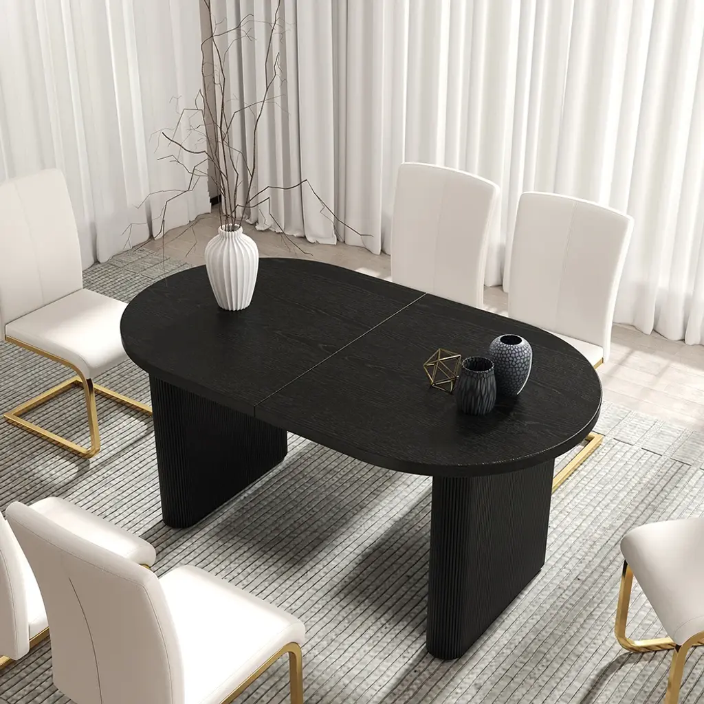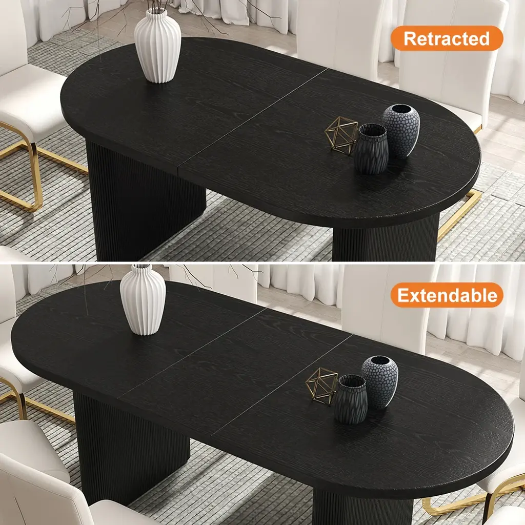 79"-94" Japandi Oval Extendable Dining Table Black Seats 6-8 People