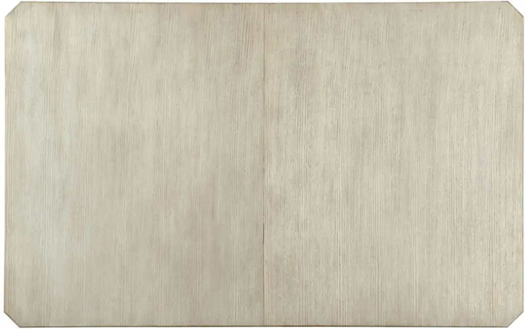 This dining table comes with two 20-inch leaves, enabling it to expand from 64 inches to 104 inches wide and to seat as many as 10 people. Brass ferrules accentuate the graceful taper of the legs, just as the brass trim along the apron complements the pale finish and rich grain of the wood.